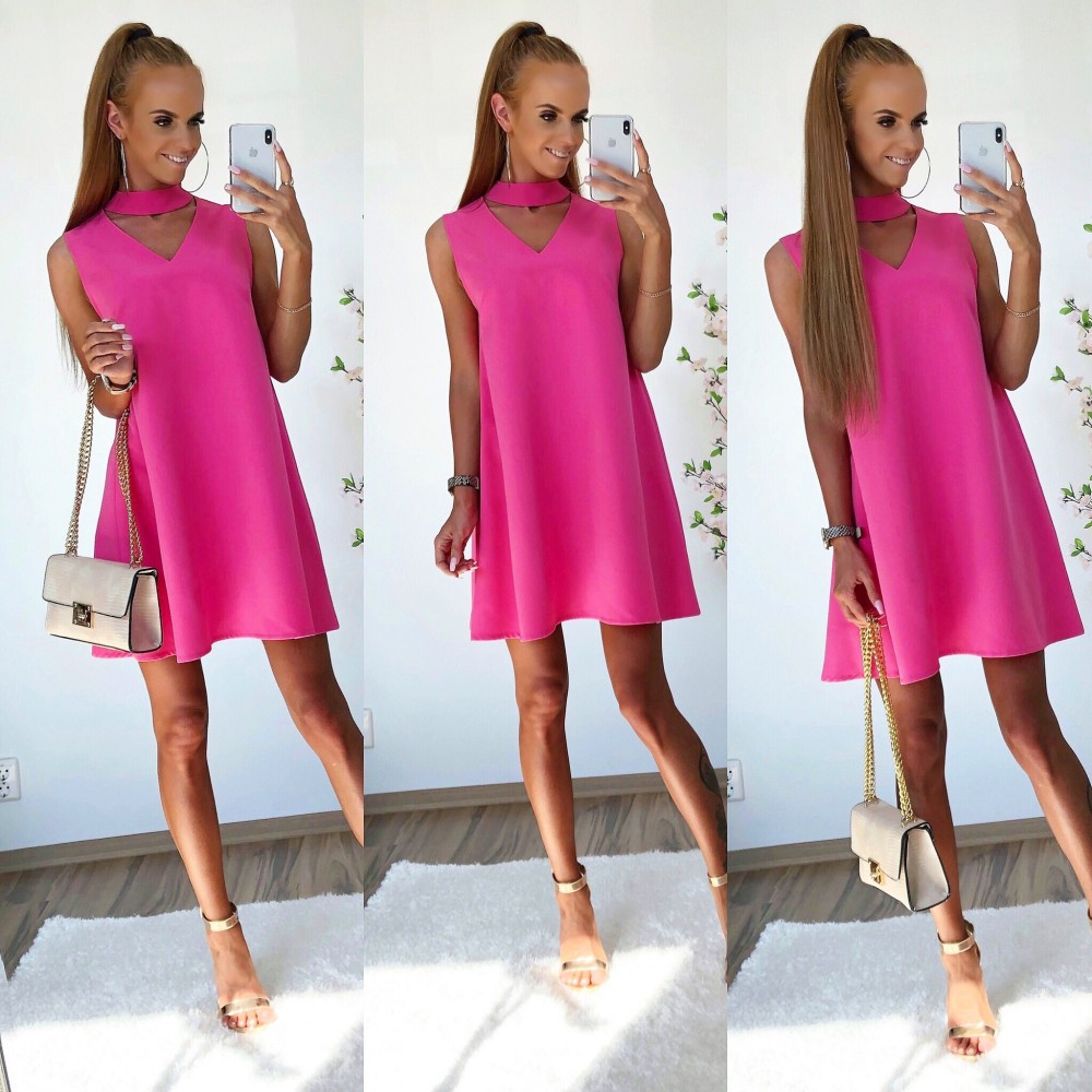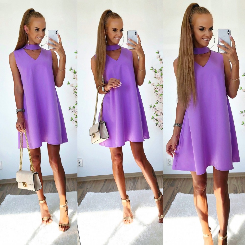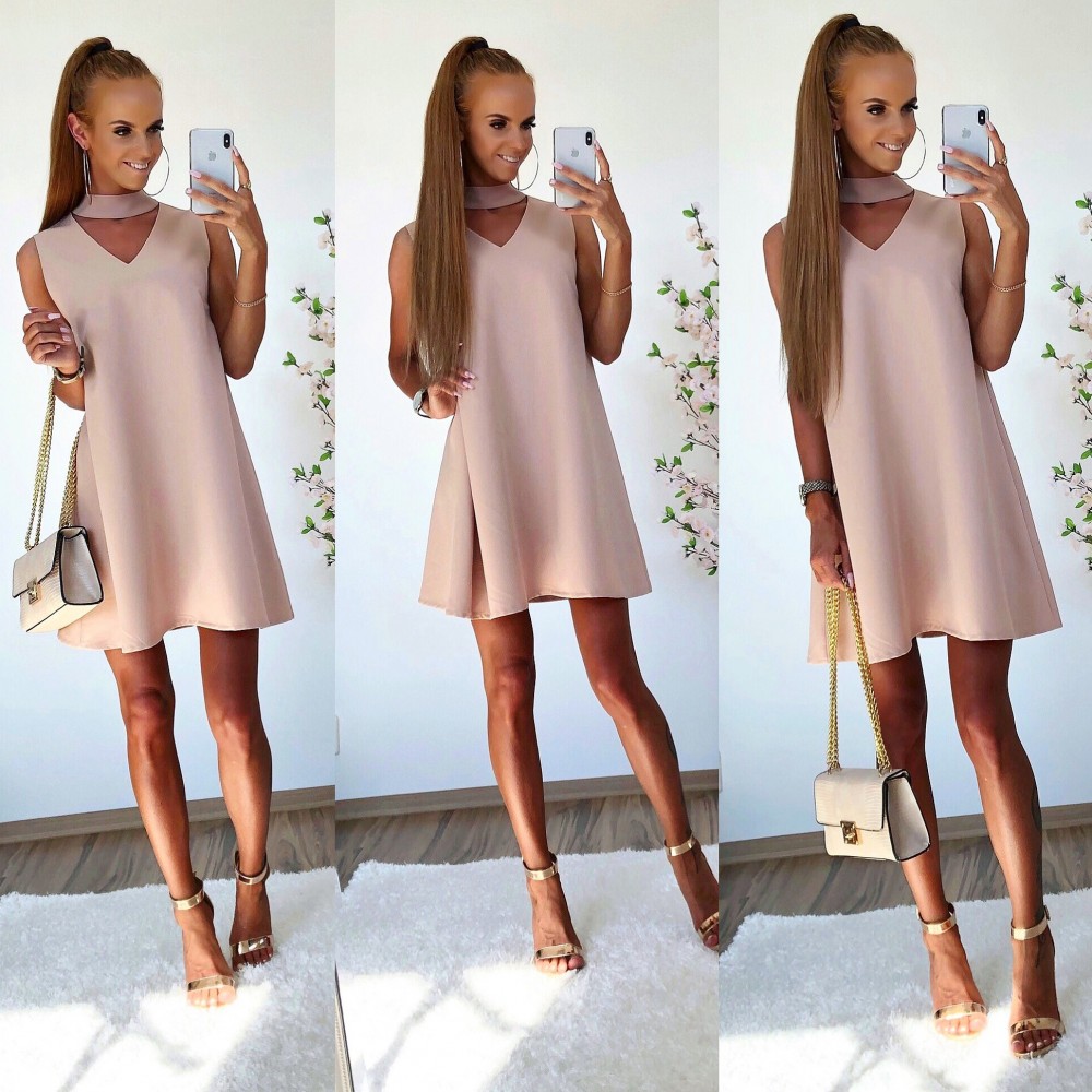 Choker-kaelusega langev kleit (Üks suurus, Beež)