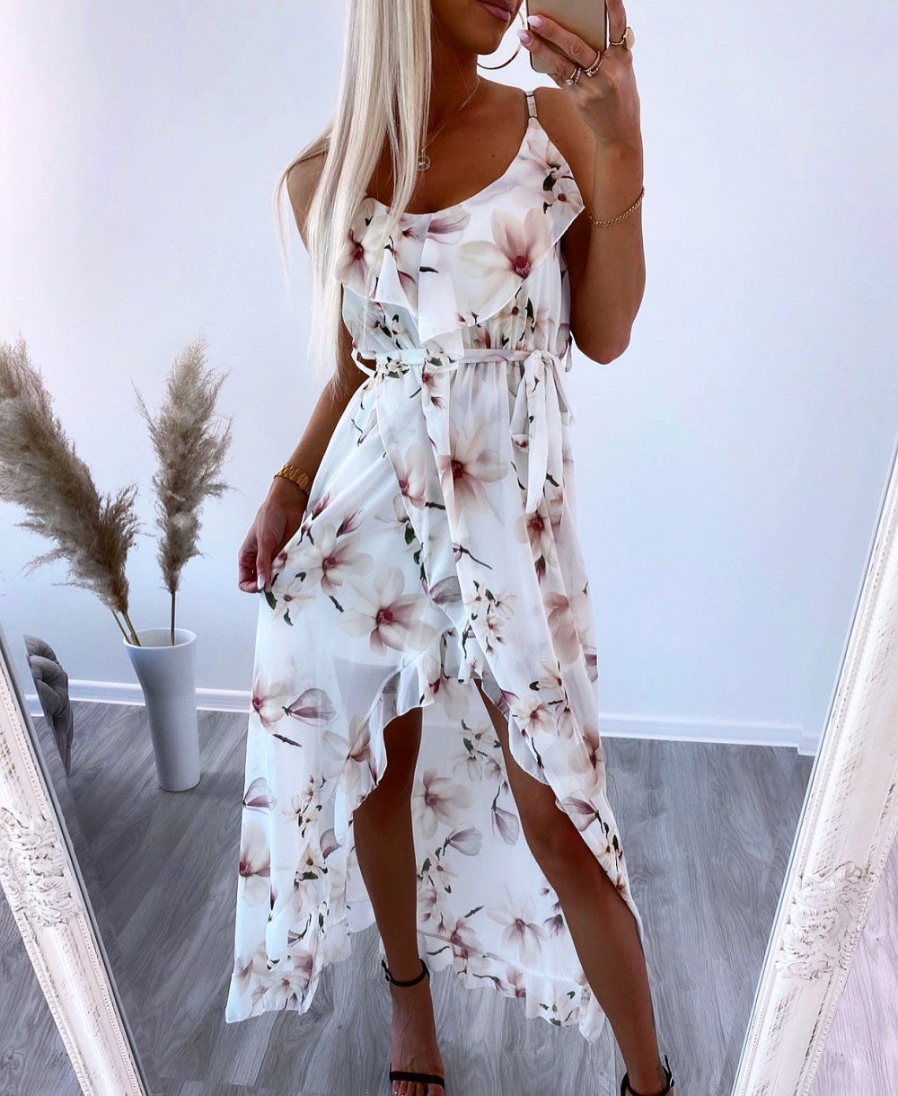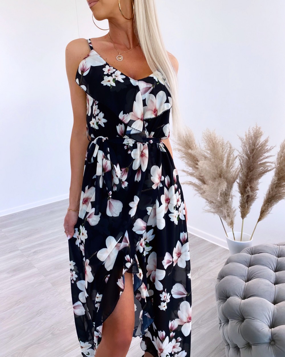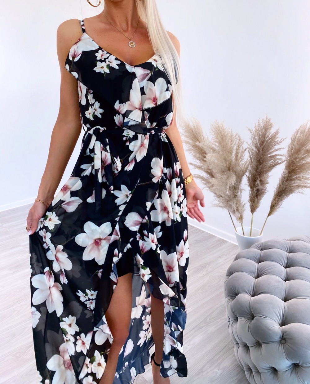 Kolmveerand pikkusega lilleline kleit (Üks suurus, Must)