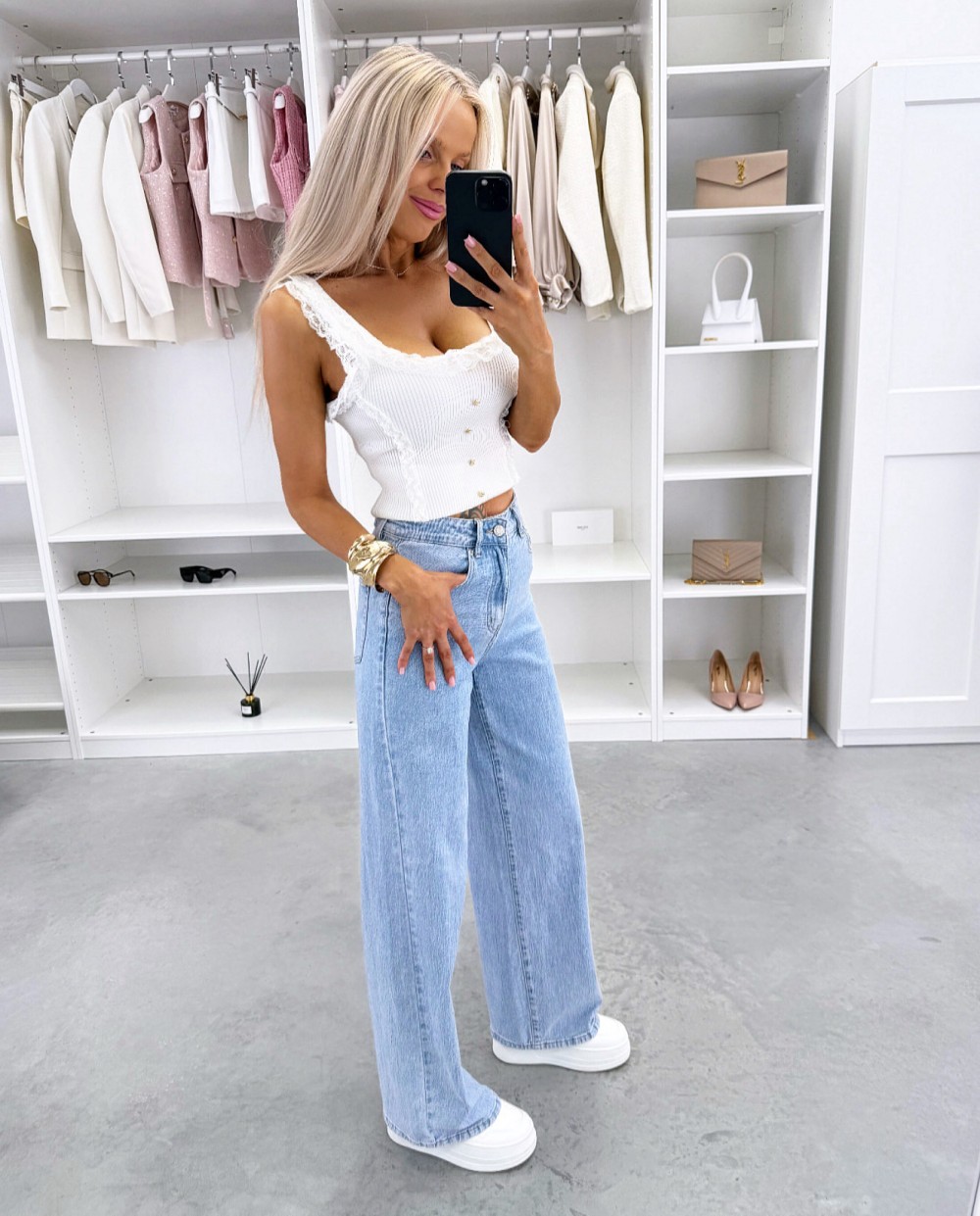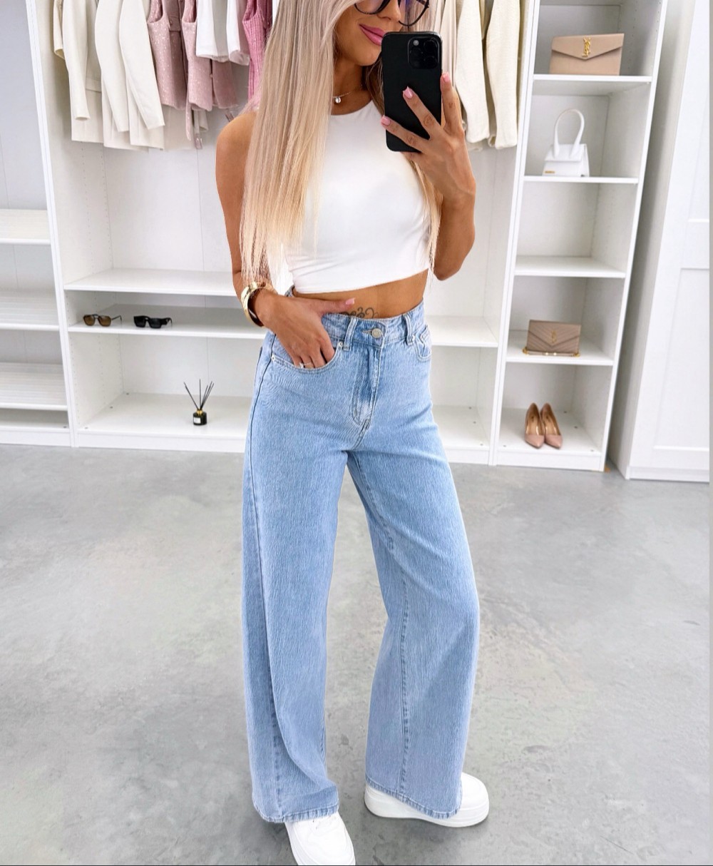 Sirgelõikelised pehmed teksad (Sinine, XL)