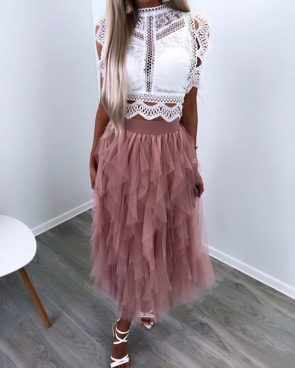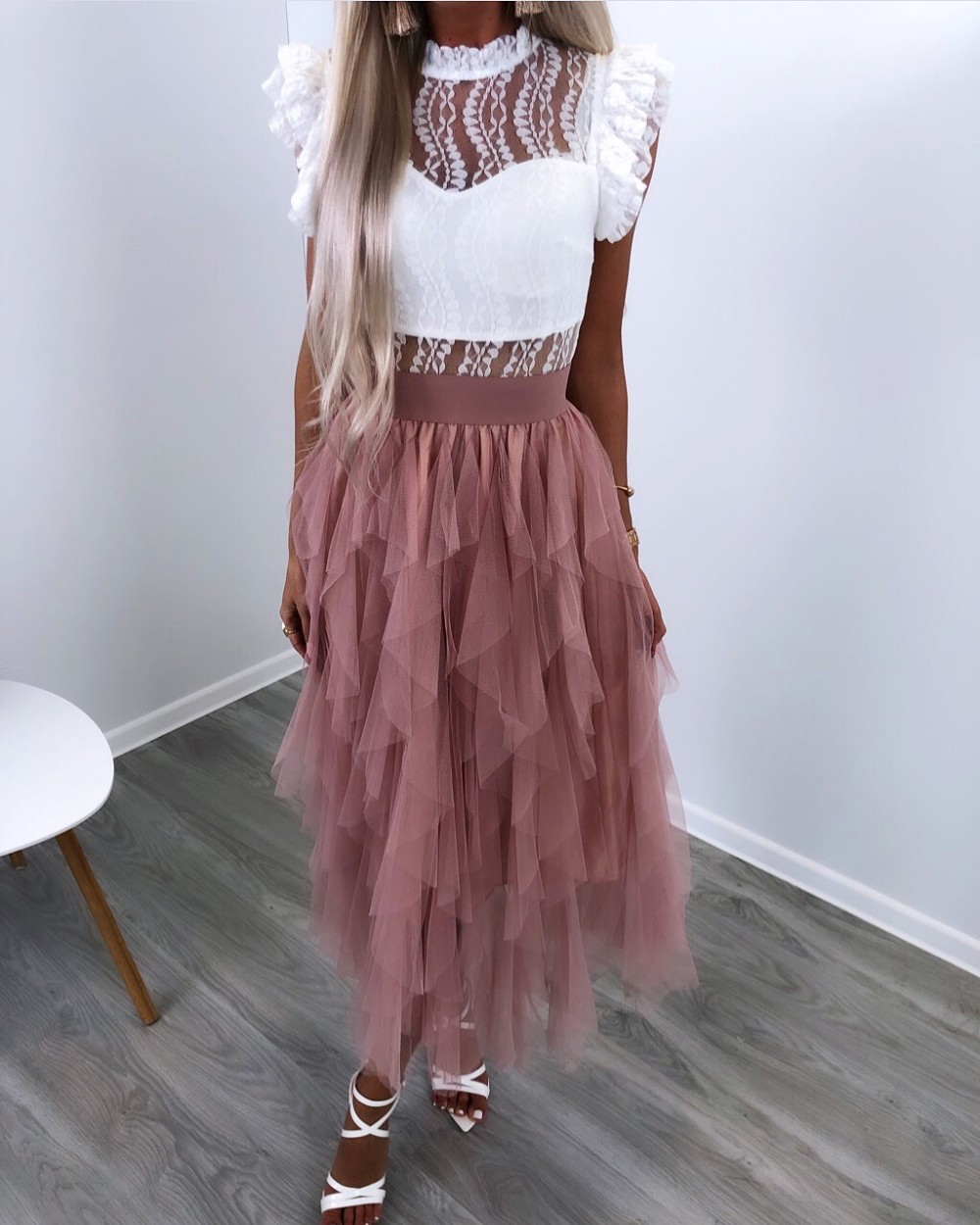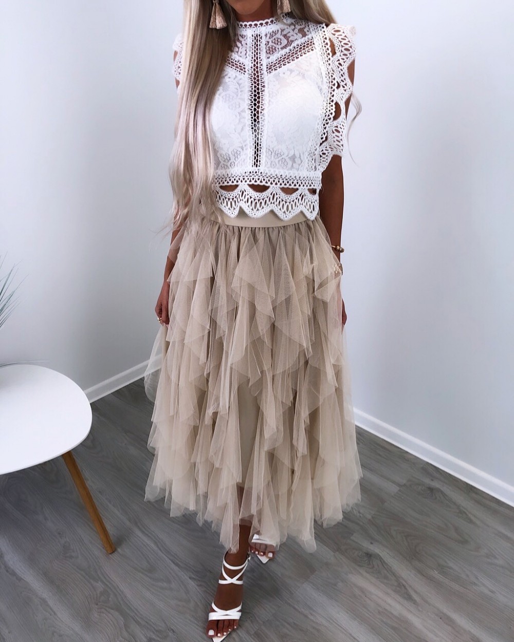 Satsidega tüllseelik (Beež, S/M)