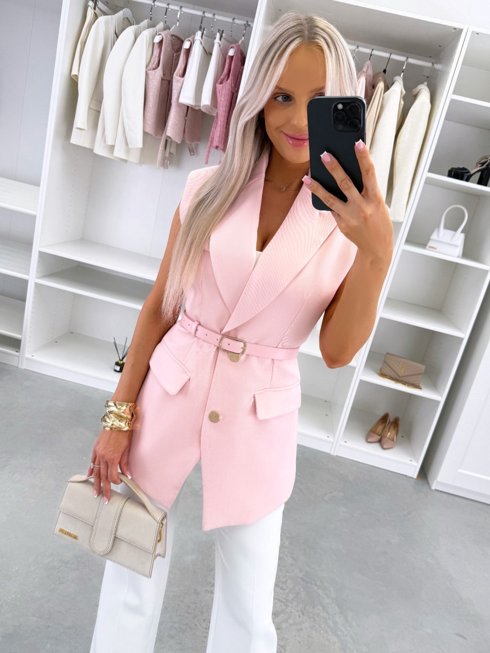 Vööga vestjakk (M, Roosa)