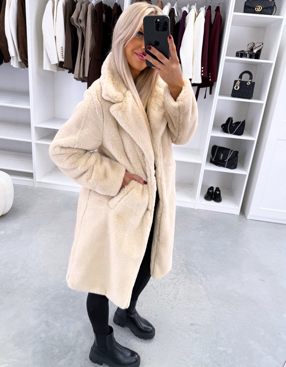 Kerge ja pehme trukkidega mantel (L, Helebeež)