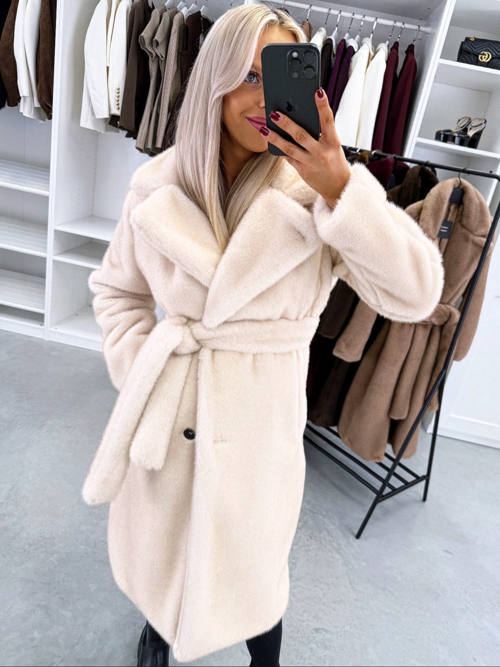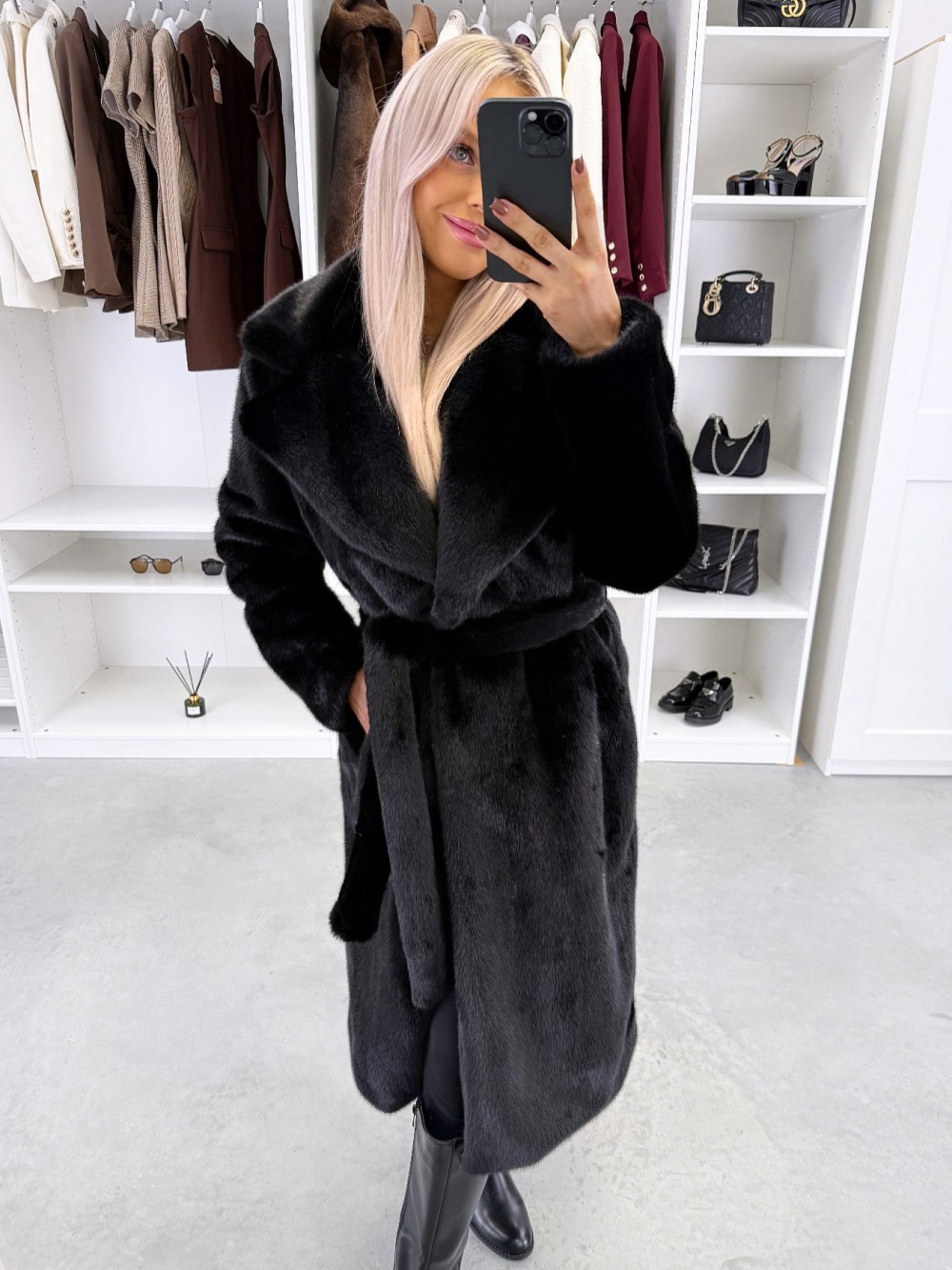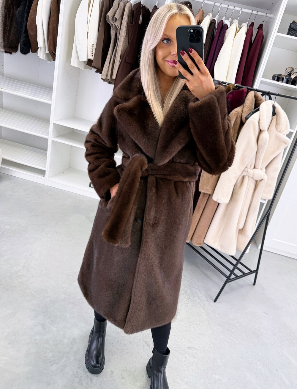 Luksuslik eest seotav talvemantel (Pruun, S/M)