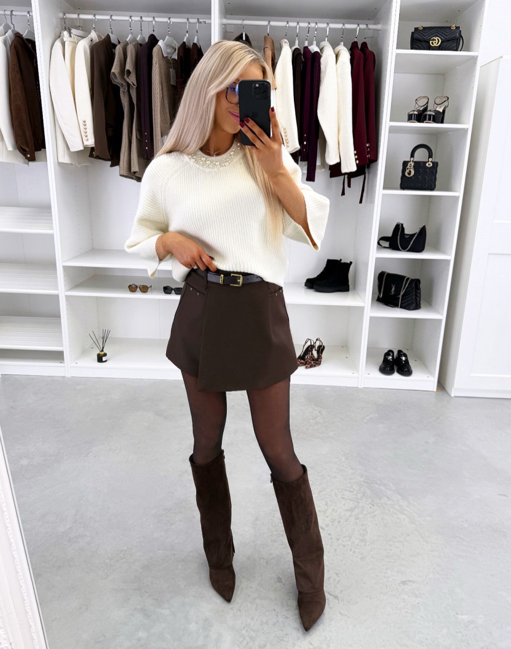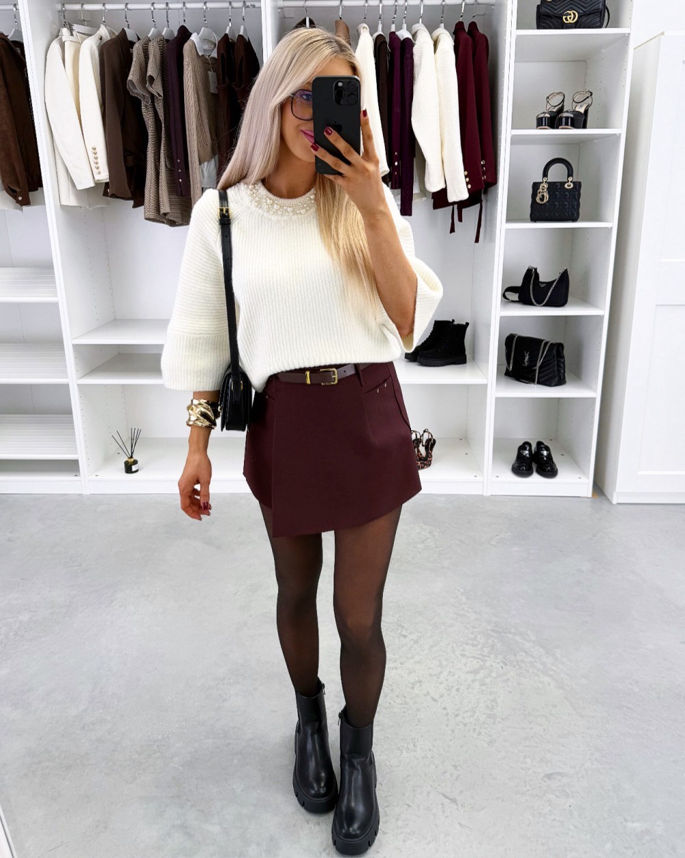 Sijonšortai su diržu (XS/S, Tamsiai raudona)