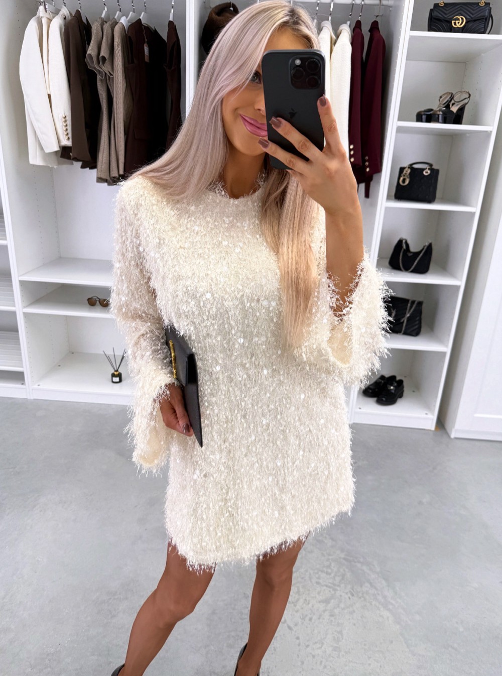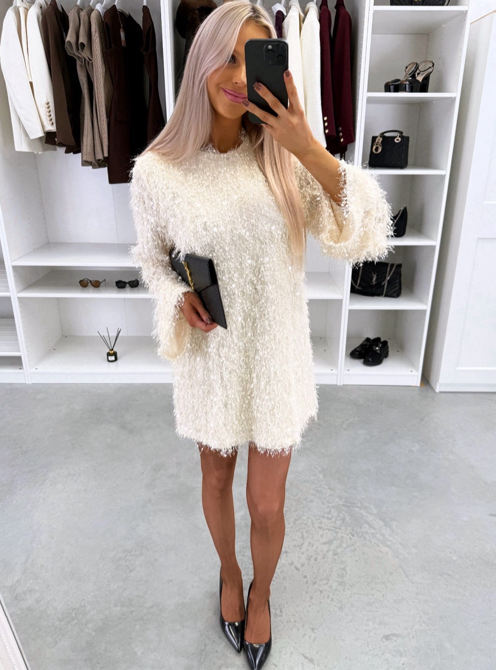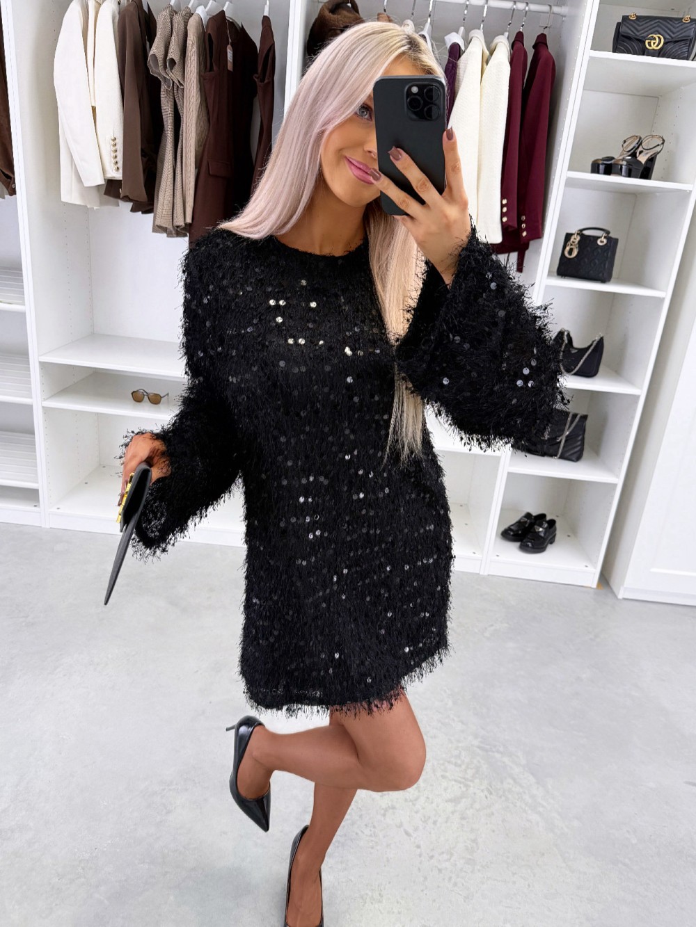 Lengvai krintanti suknelė su blizgučiais (S, Juoda)