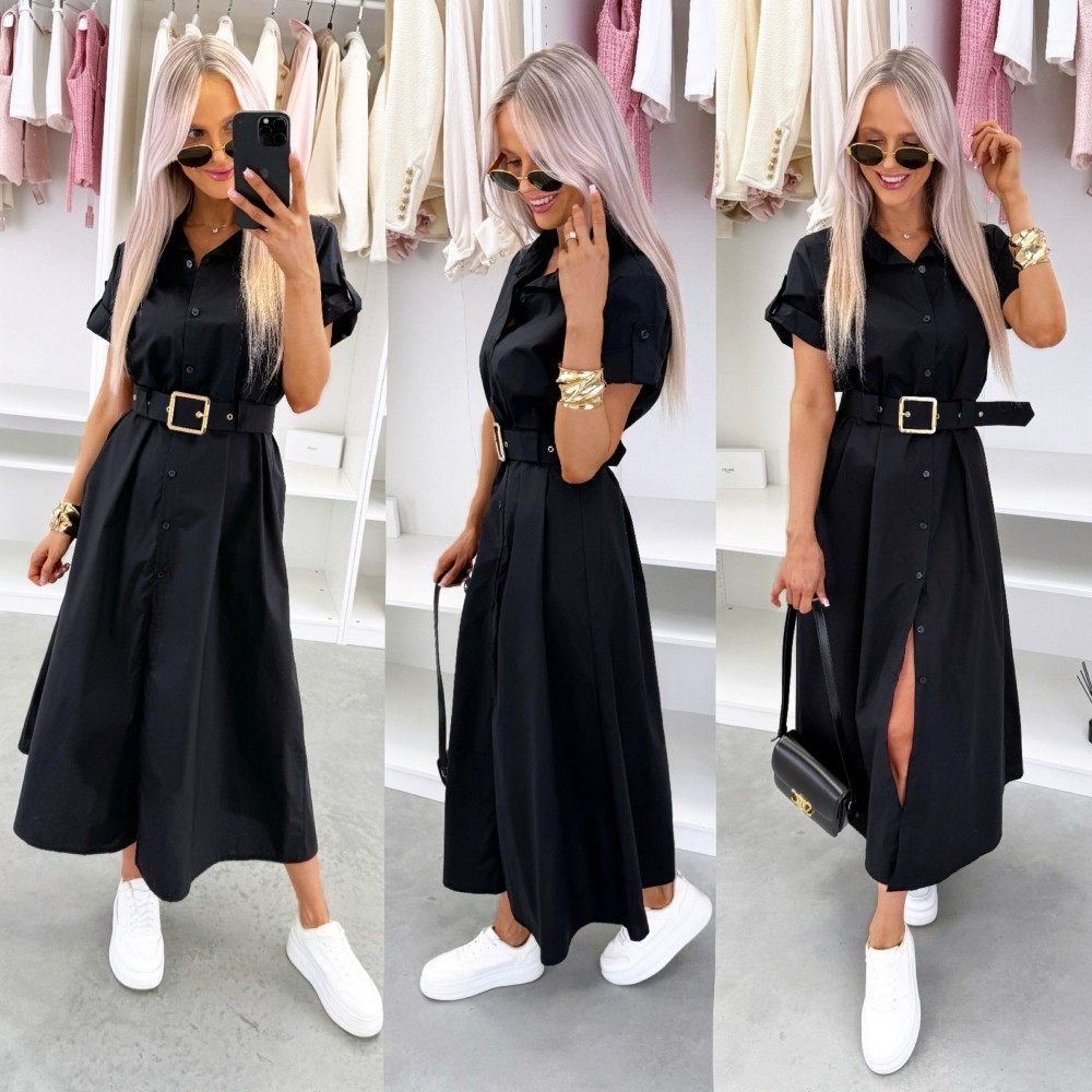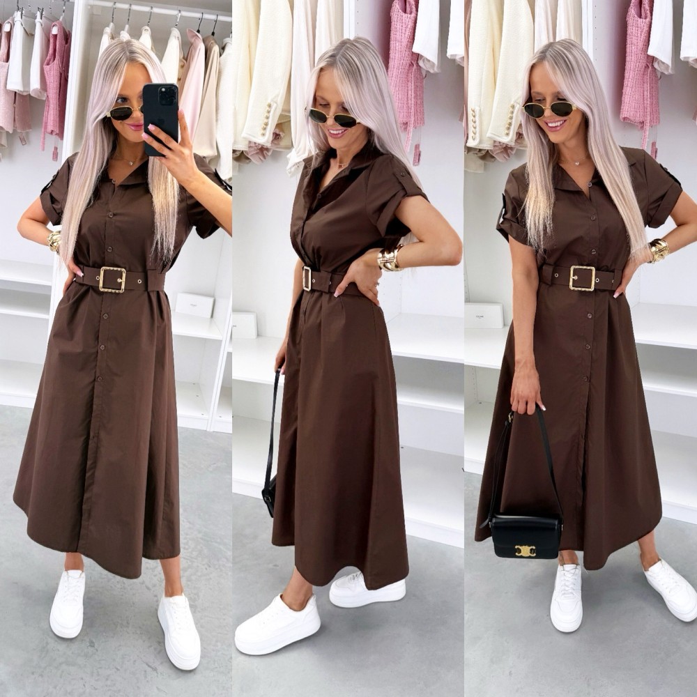 Suknelė su diržu (Vienas dydis, Ruda)