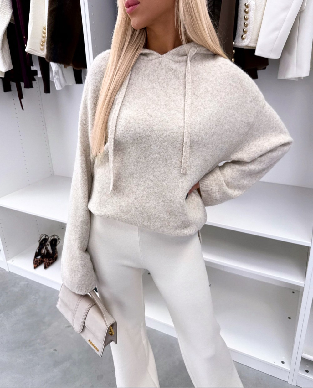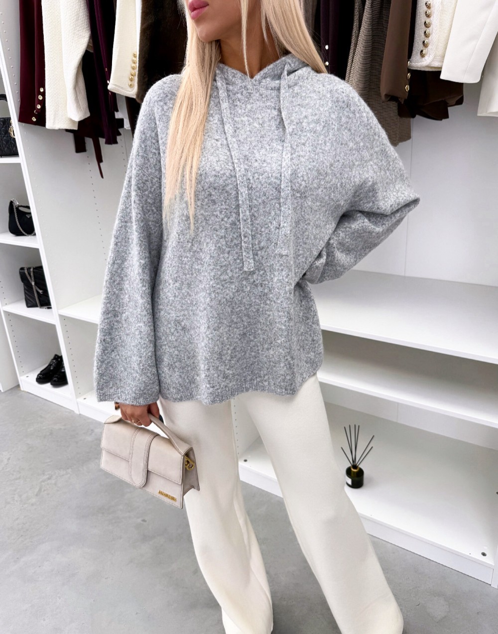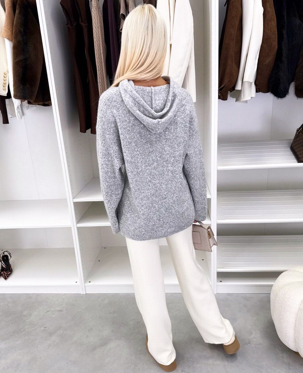 Minkštas džemperis su gobtuvu (Vienas dydis, Pilka)