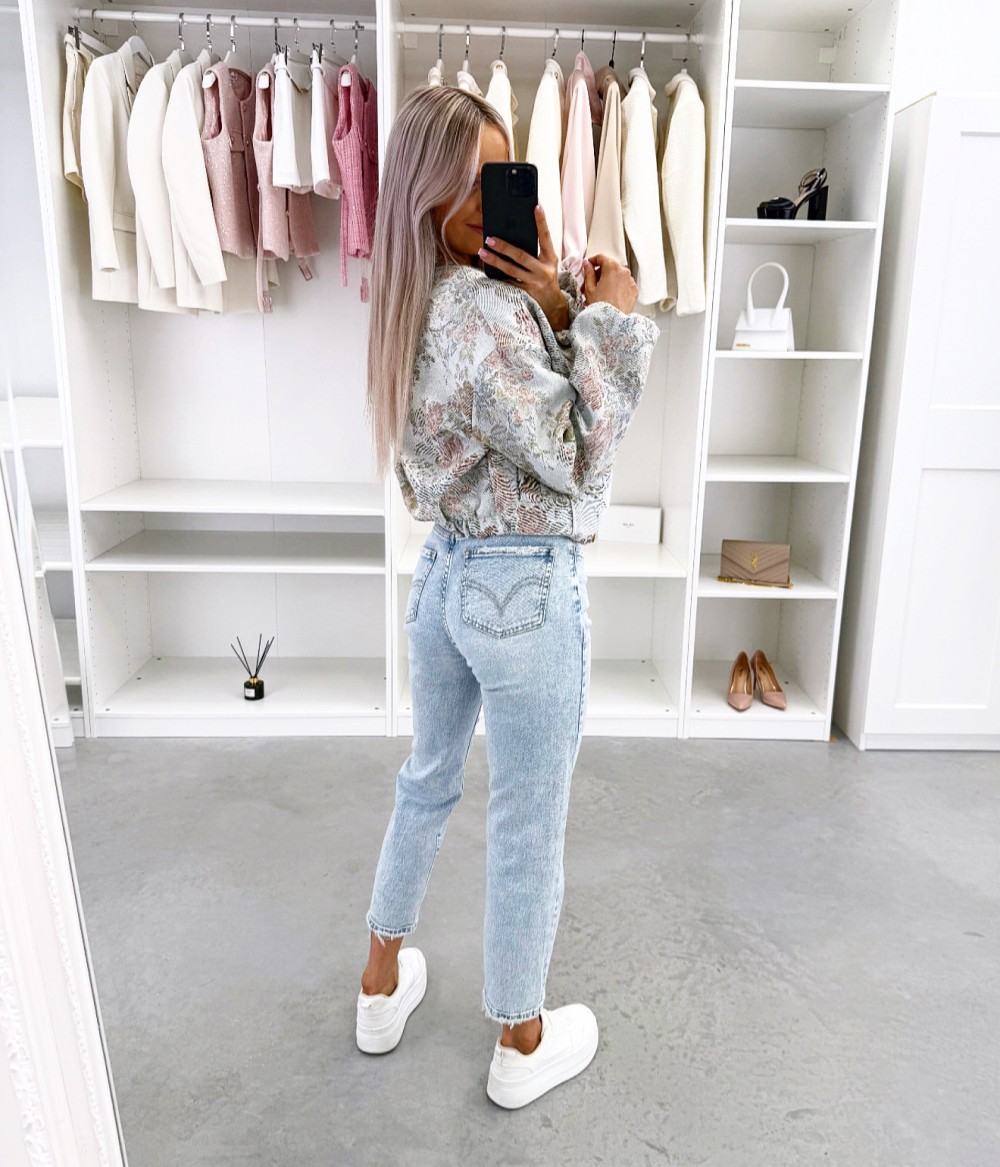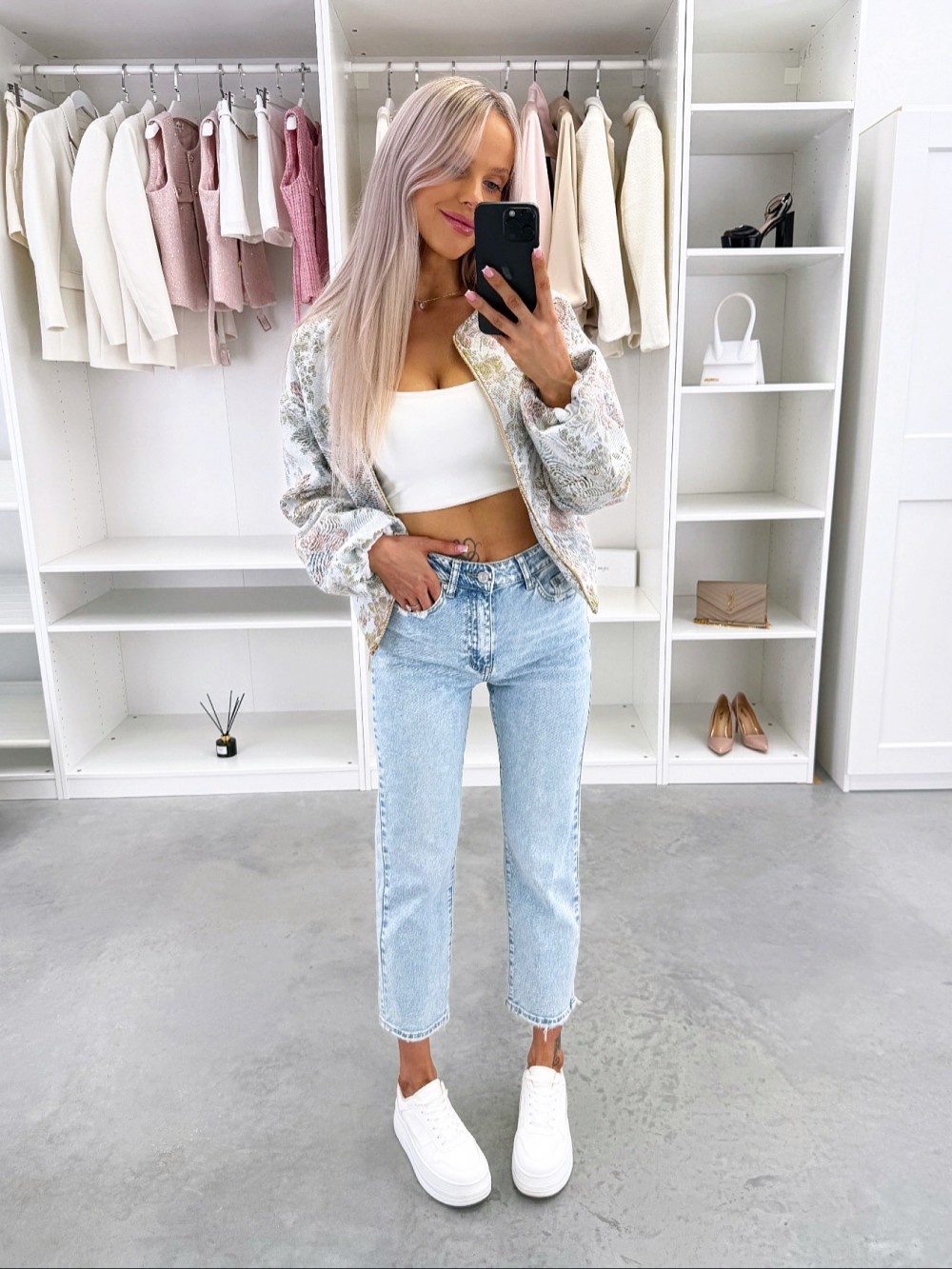 Mīksti un ērti mom fit džinsi (L, Gaiši zils)