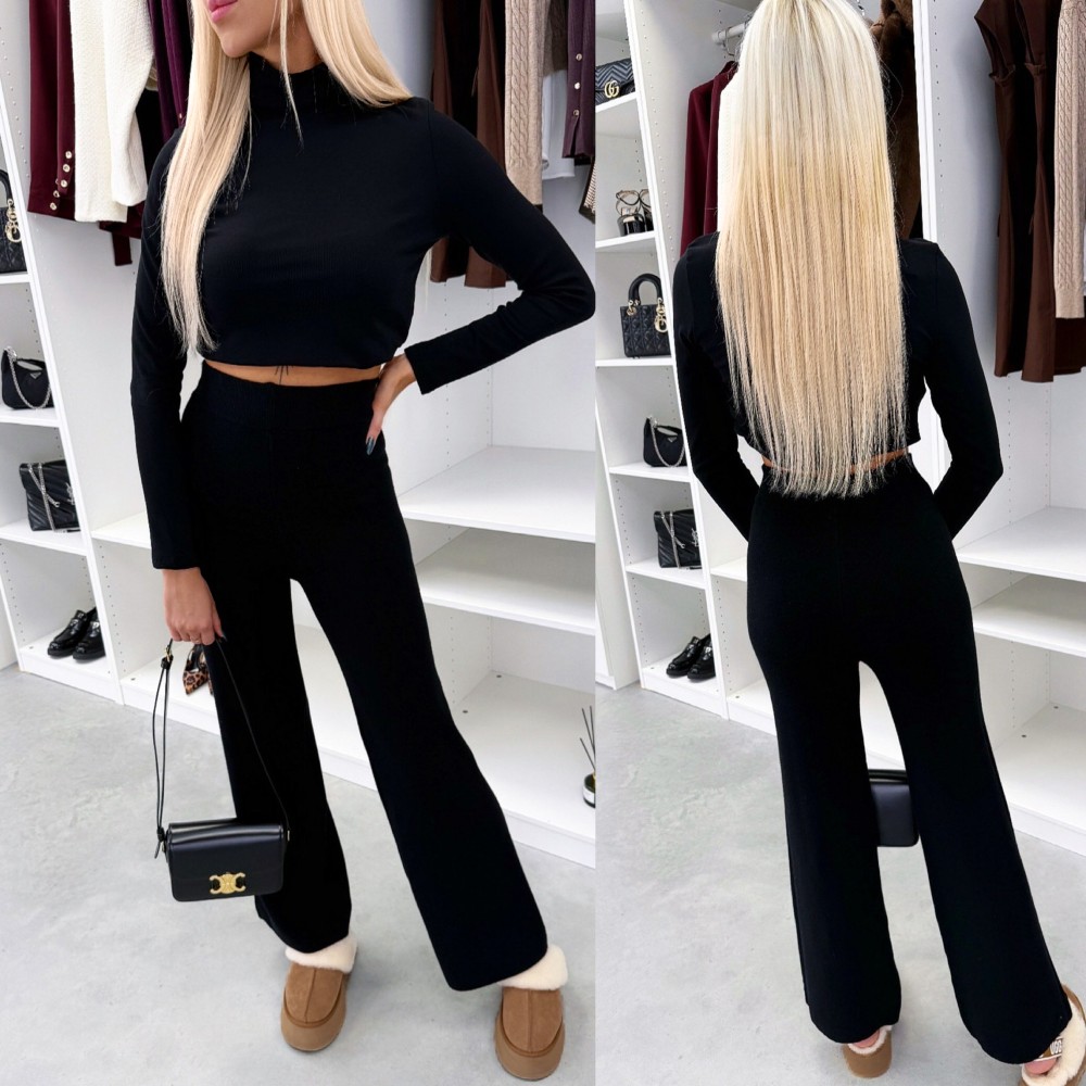 Mīkstas un elastīgas taisna piegriezuma bikses (Viens izmērs, Melns)