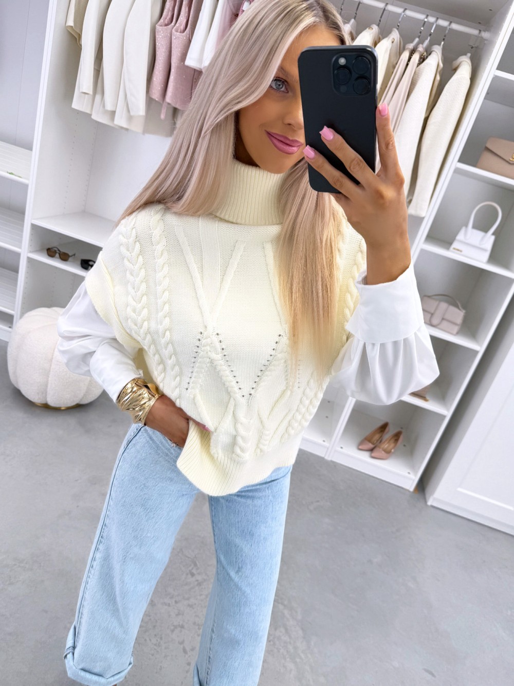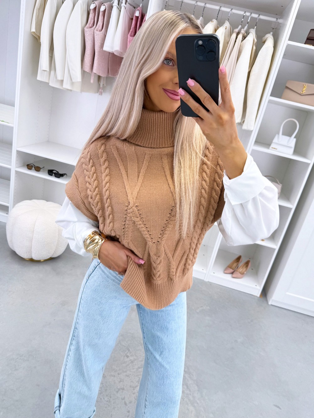Balts adīts vests ar oderi (Viens izmērs, Kamielis)