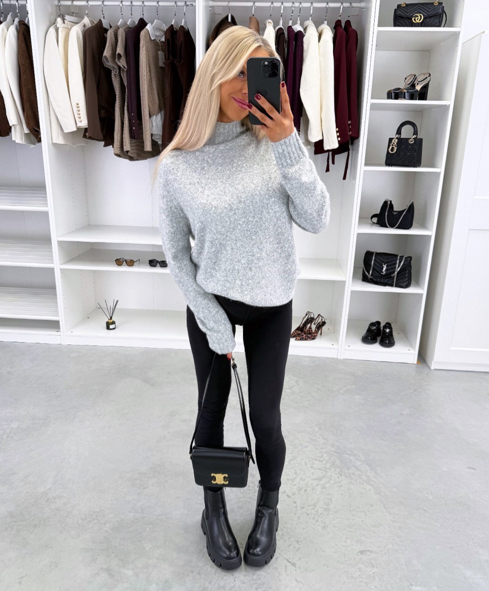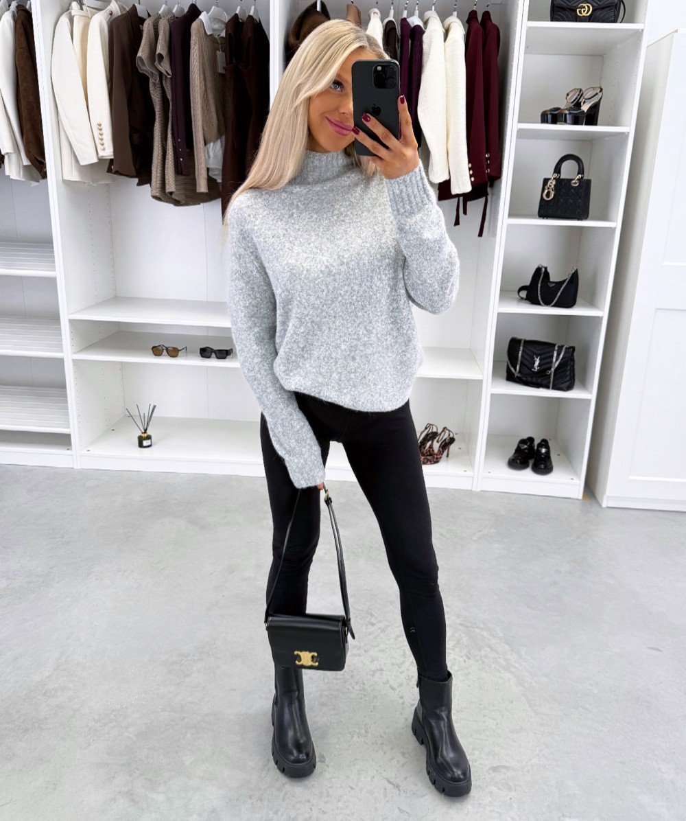 Maigs adījuma džemperis ar augstu apkakli (Viens izmērs, Pelēks)