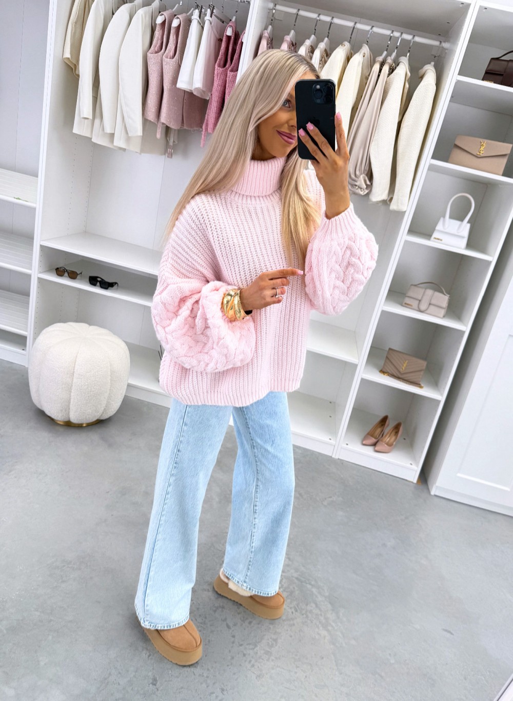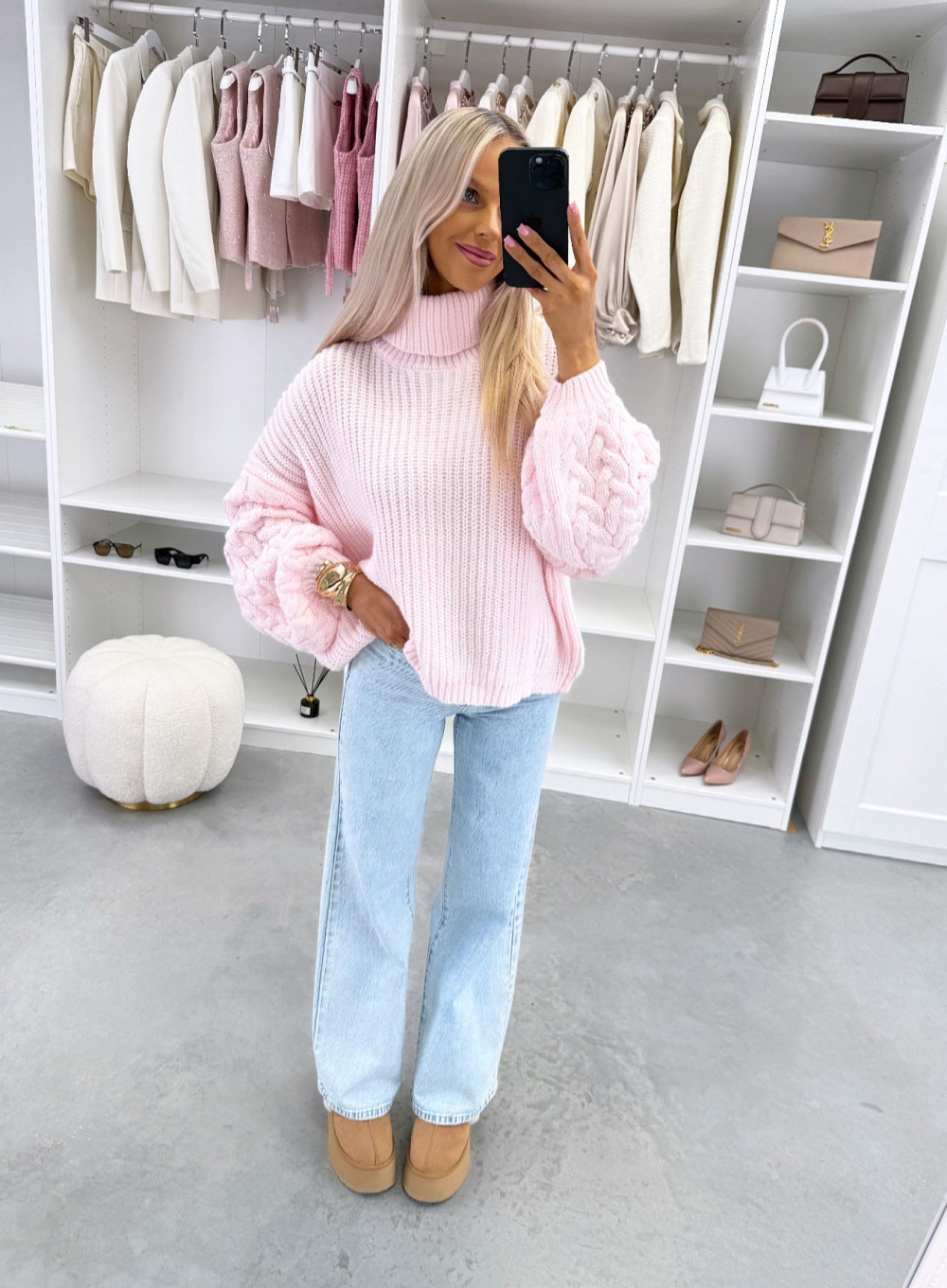Oversize adījums ar augstu apkakli (Viens izmērs, Gaiši bēša)