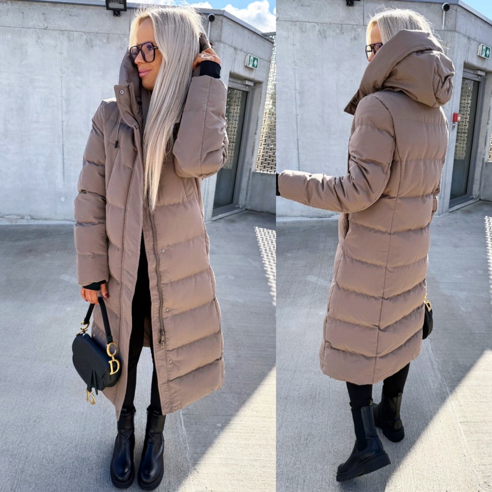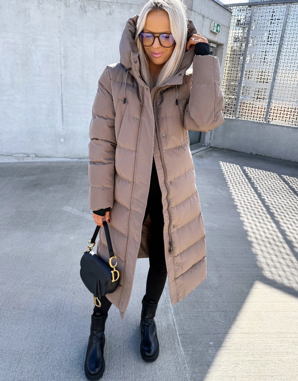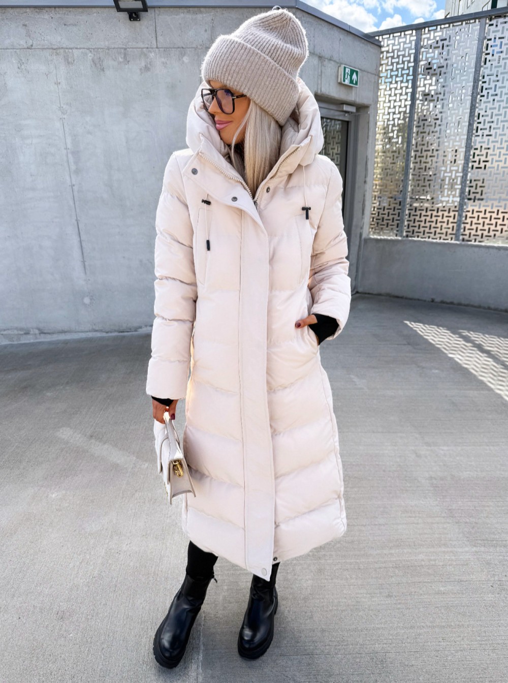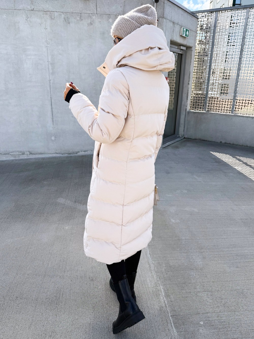 Dłuższa ciepła parka zimowa z kapturem (L, Jasny beż)