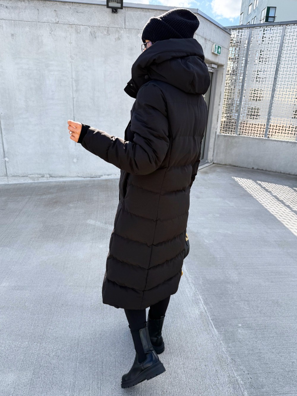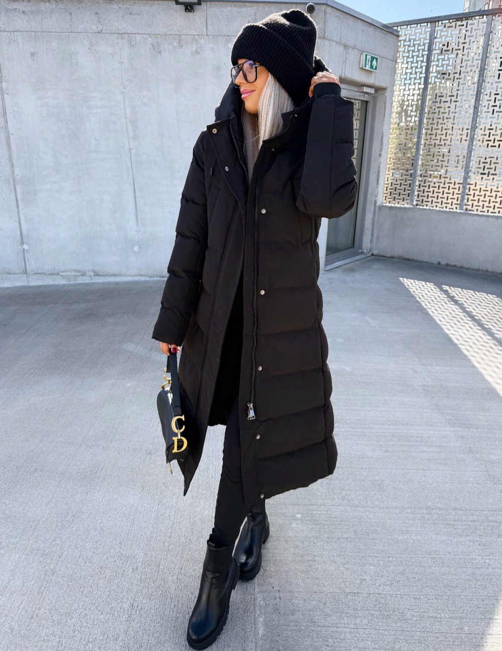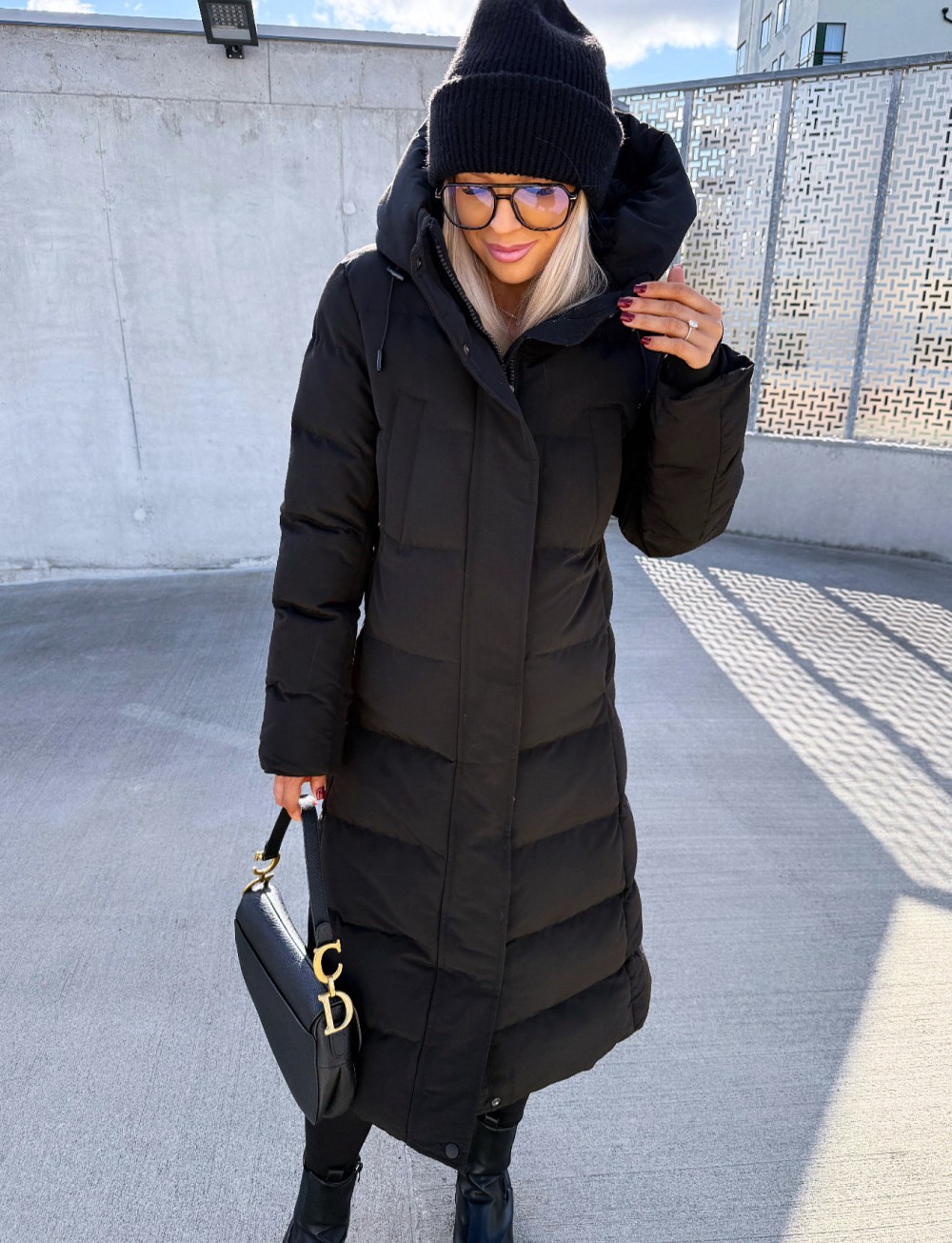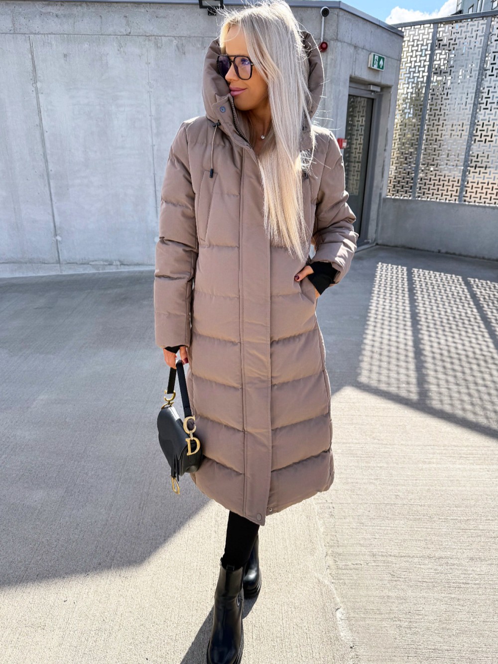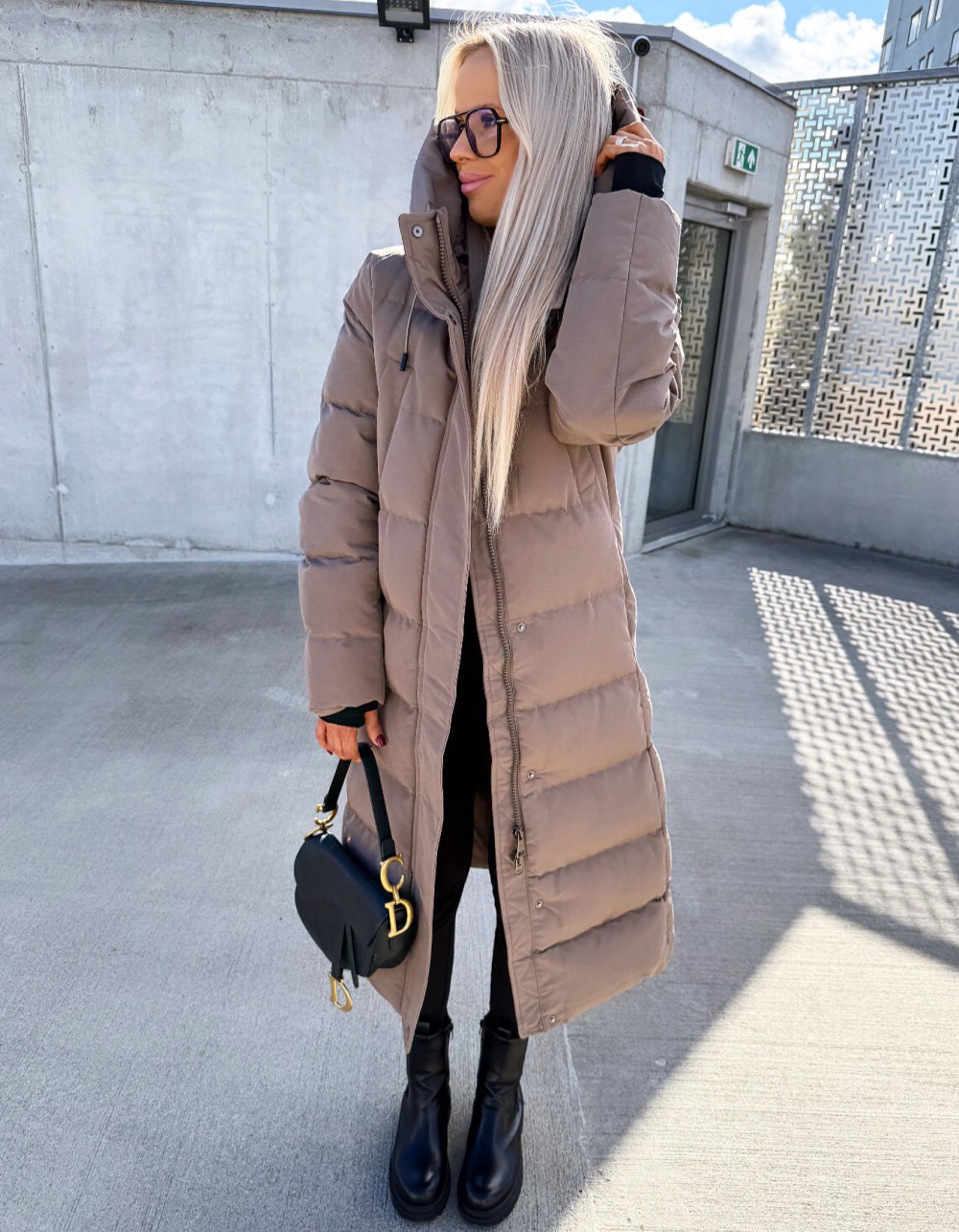 Dłuższa ciepła parka zimowa z kapturem (L, Jasny beż)
