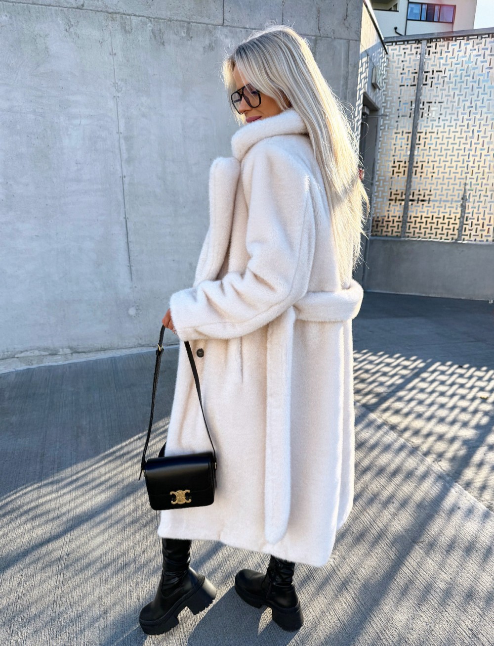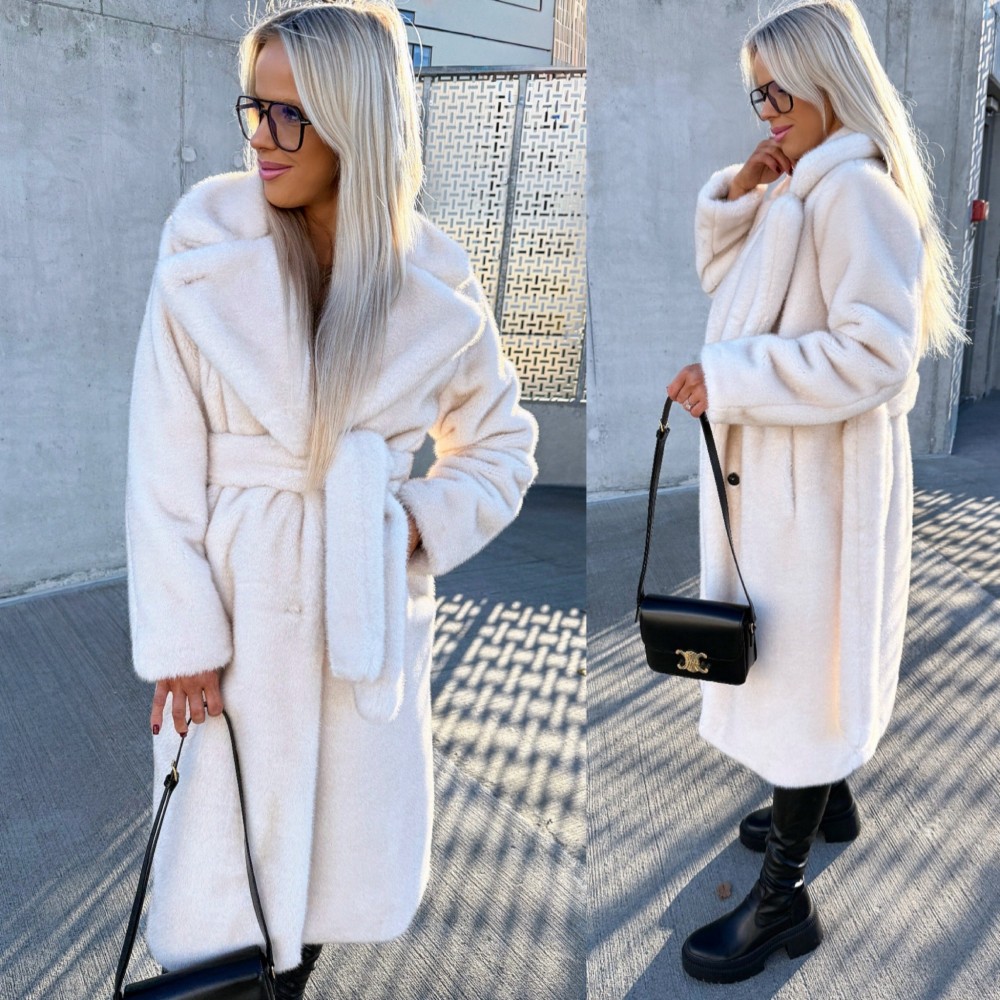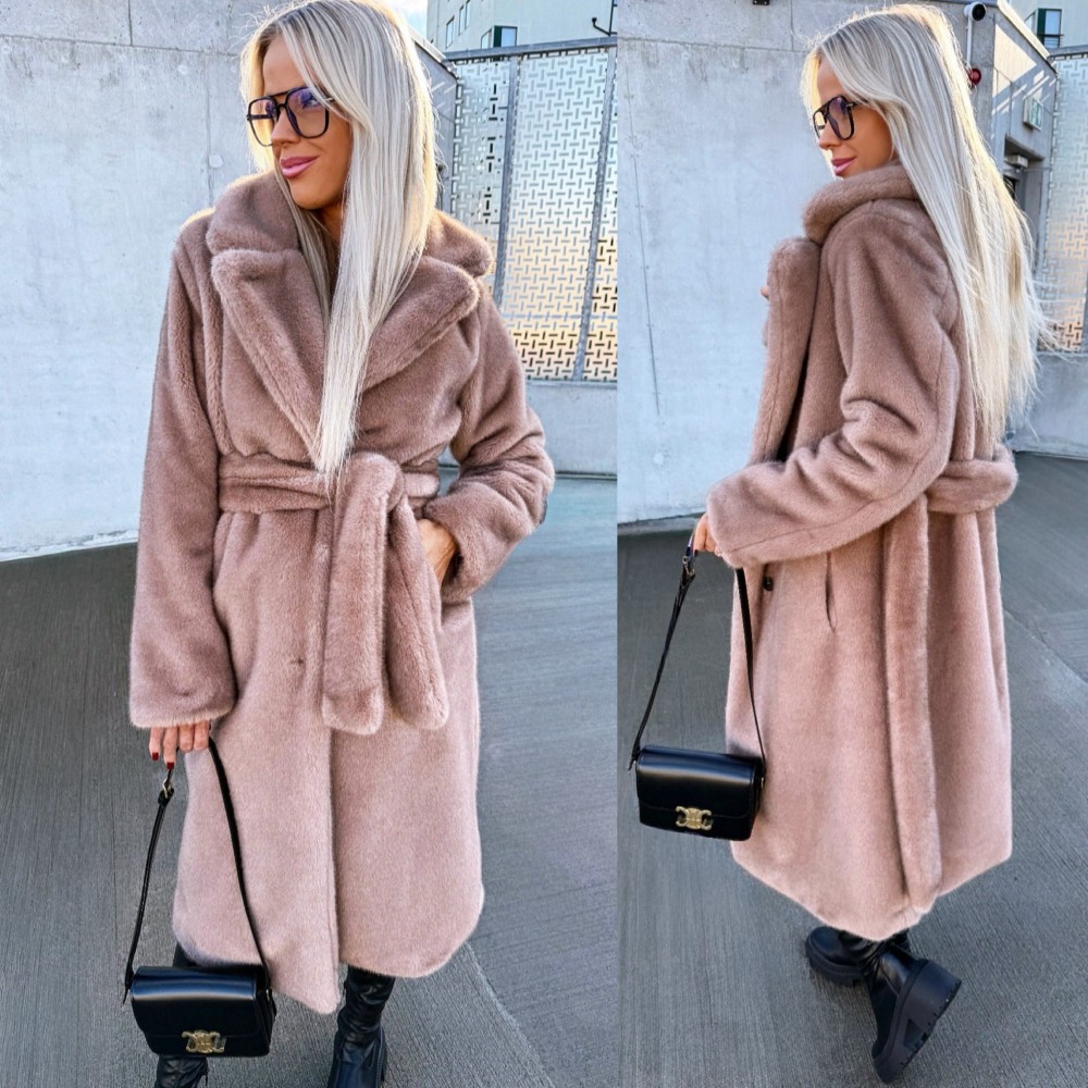Luksusowy zimowy płaszcz wiązany z przodu (S/M, Jasny beż)