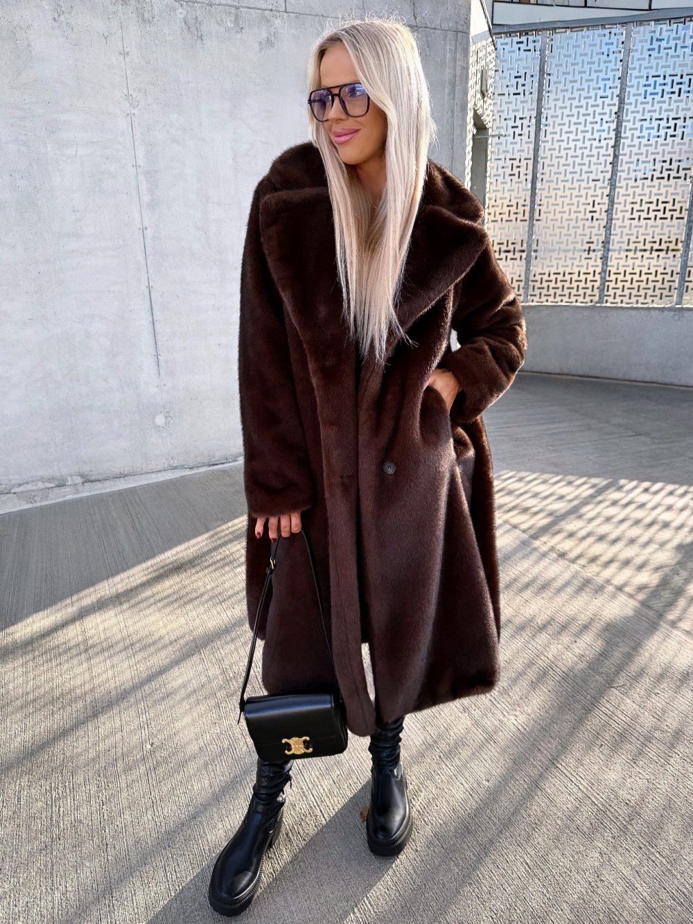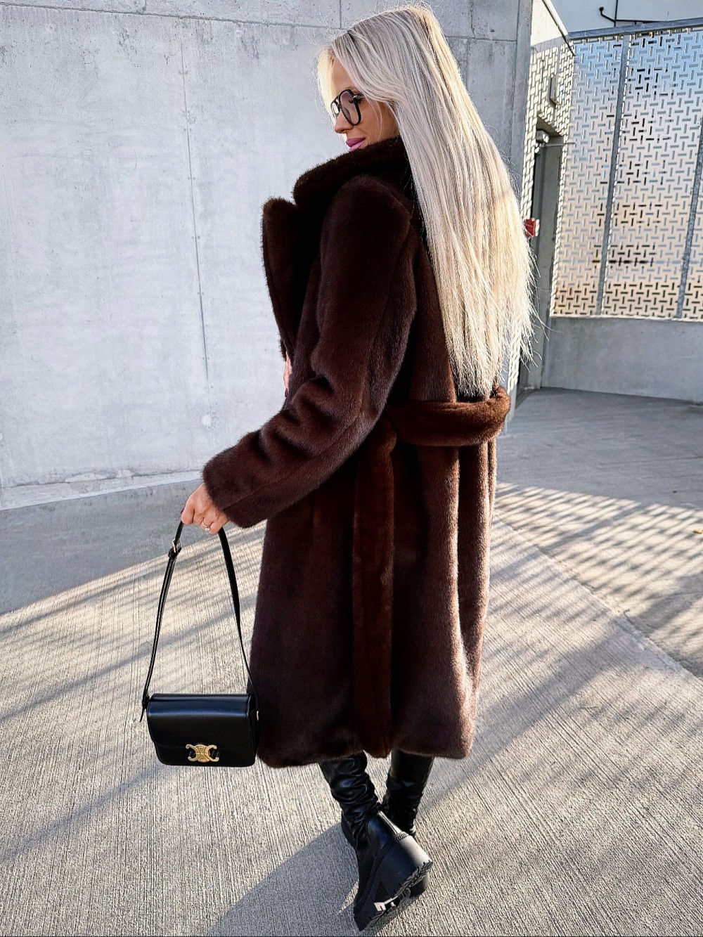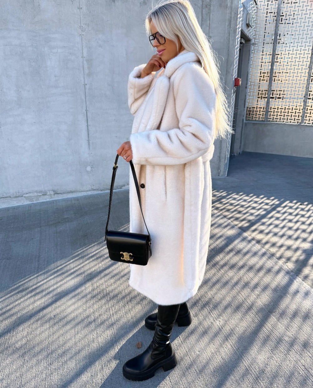 Luksusowy zimowy płaszcz wiązany z przodu (S/M, Jasny beż)