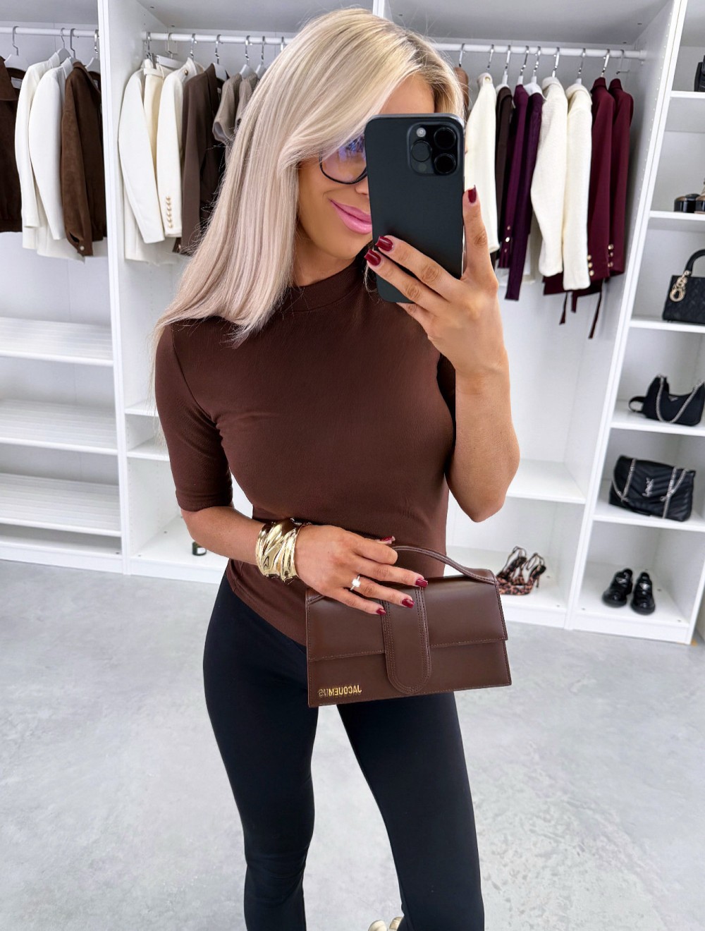 Мягкий облегающий топ (Один размер, Серо-коричневый)