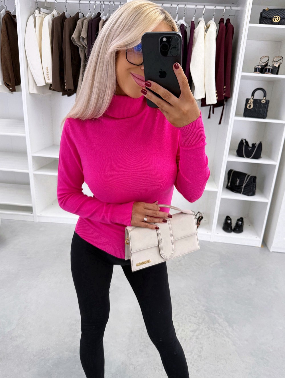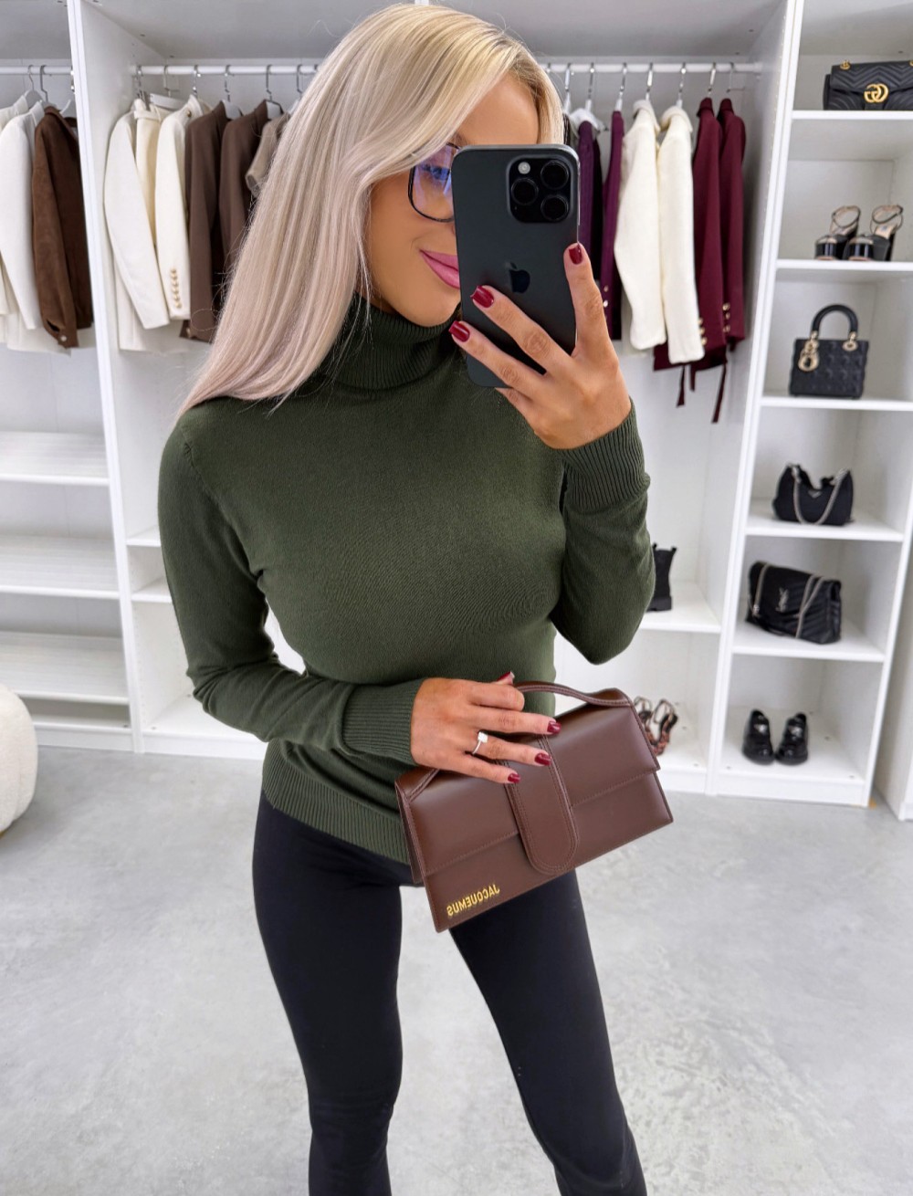 Мягкий эластичный свитер с воротником-гольф (Один размер, Черный)