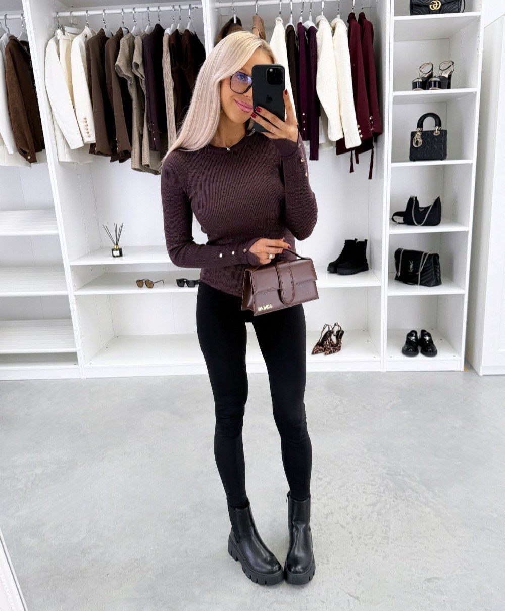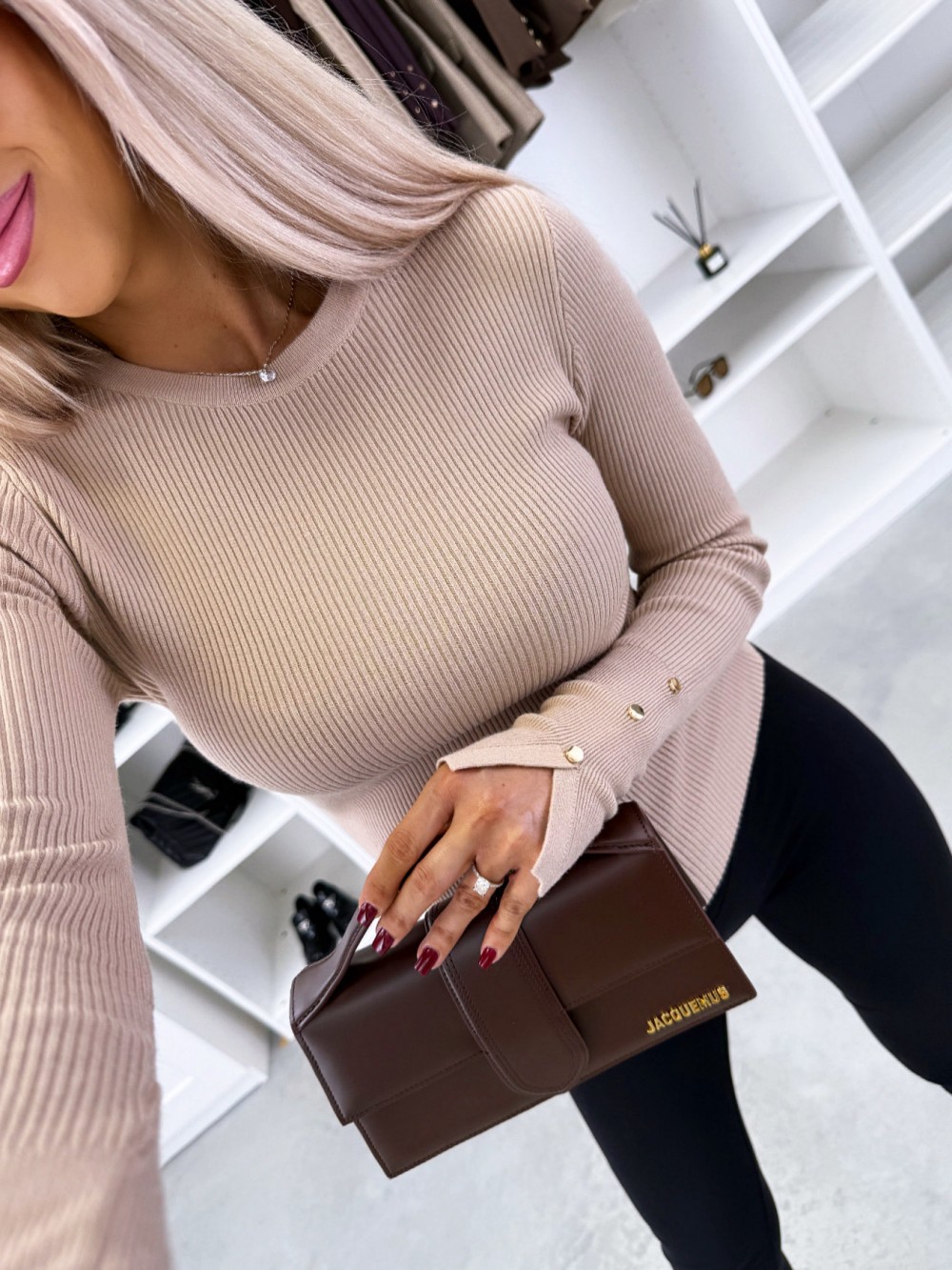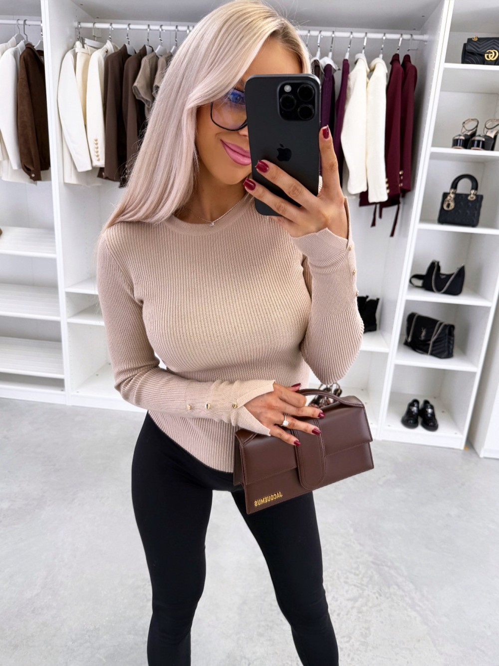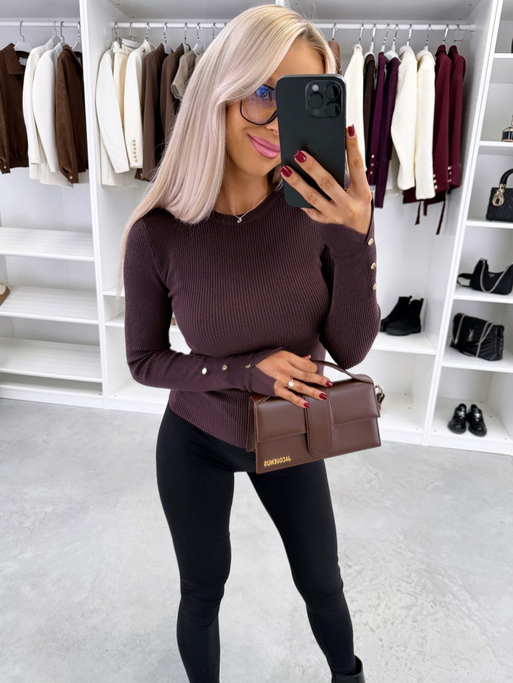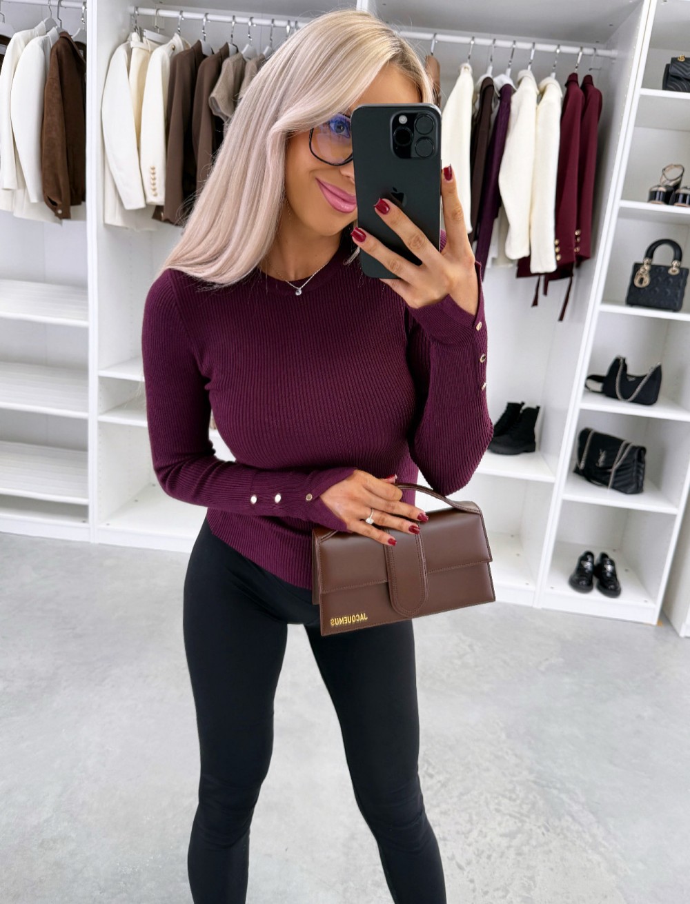 Стрейчевый свитер с золотистыми пуговицами (Один размер, темно-красный)