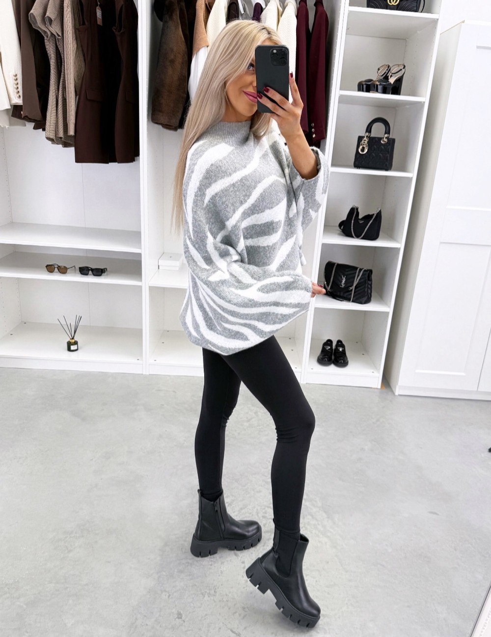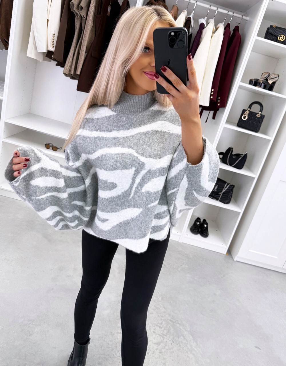 Вязаный свитер с удлинённой спинкой (Один размер, Серый)