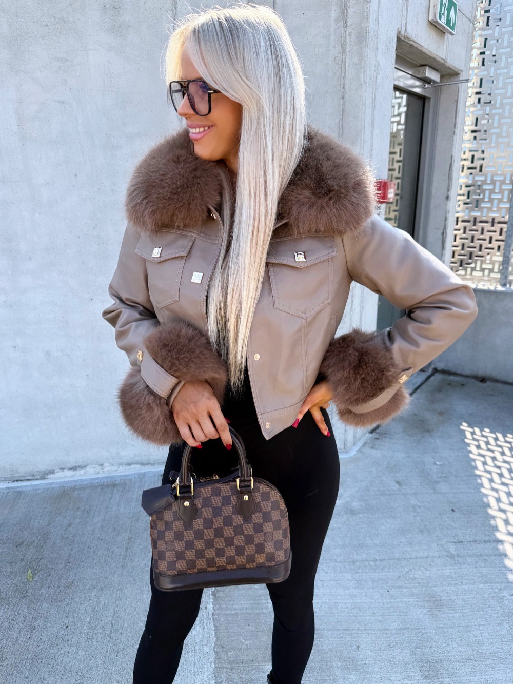 Куртка с тёплой подкладкой (Серо-коричневый, S/M)