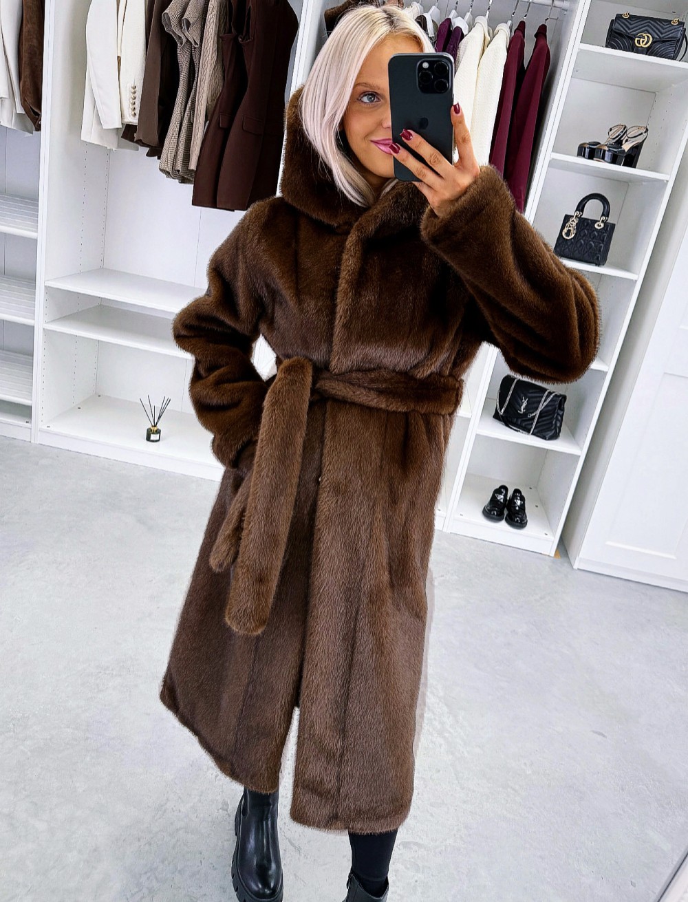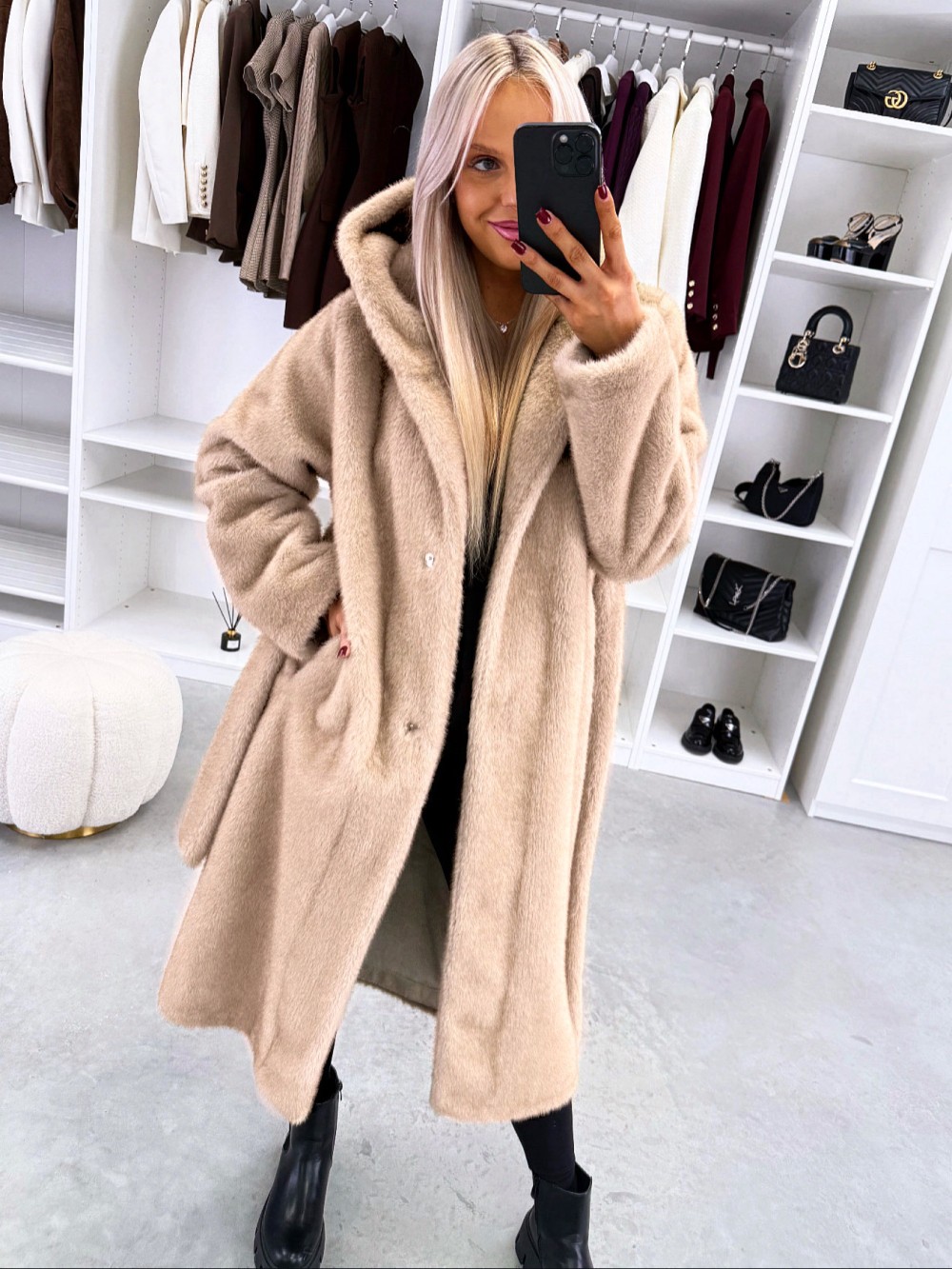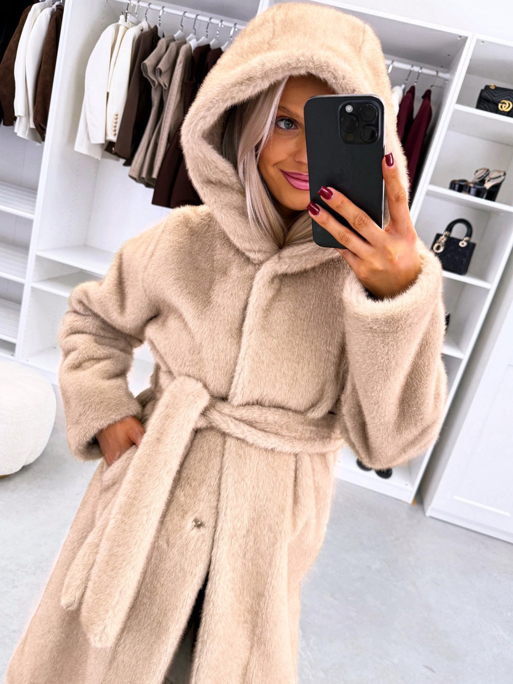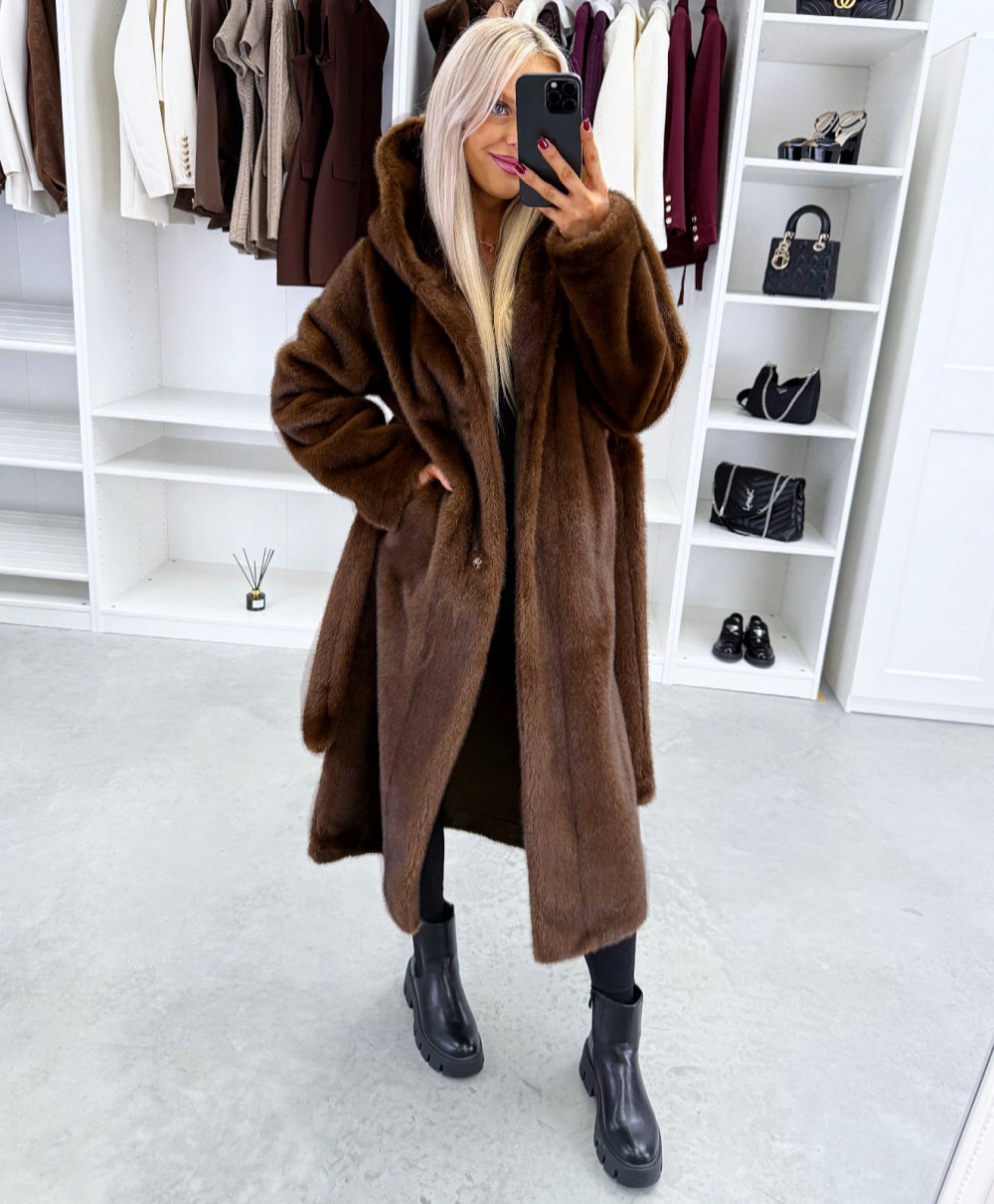 Роскошное зимнее пальто с капюшоном (Один размер, Серо-коричневый)