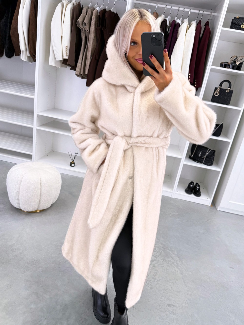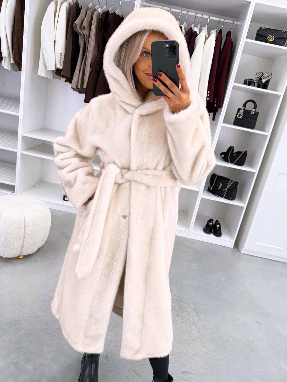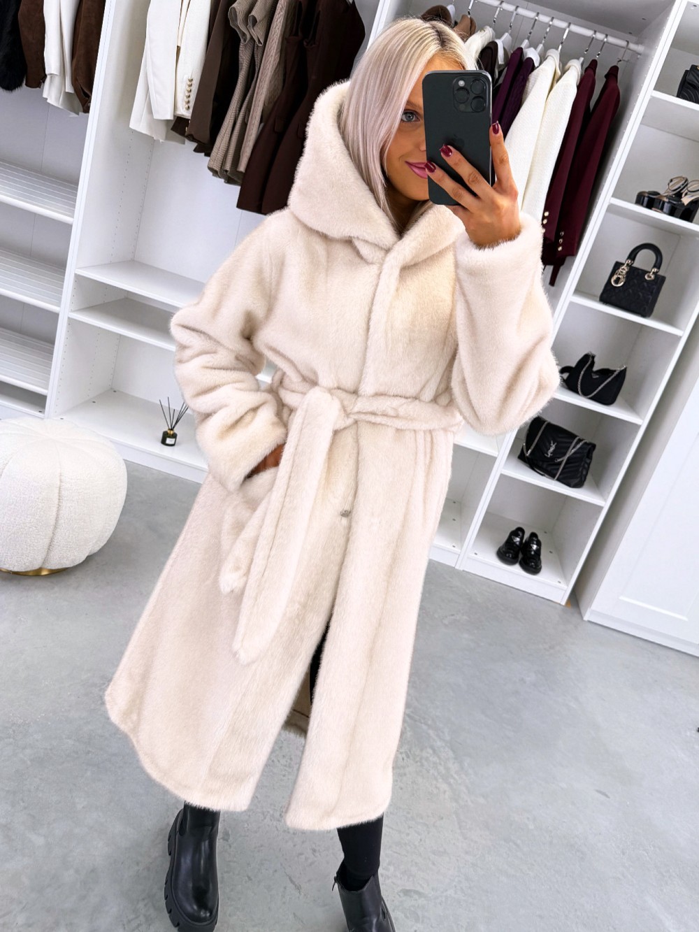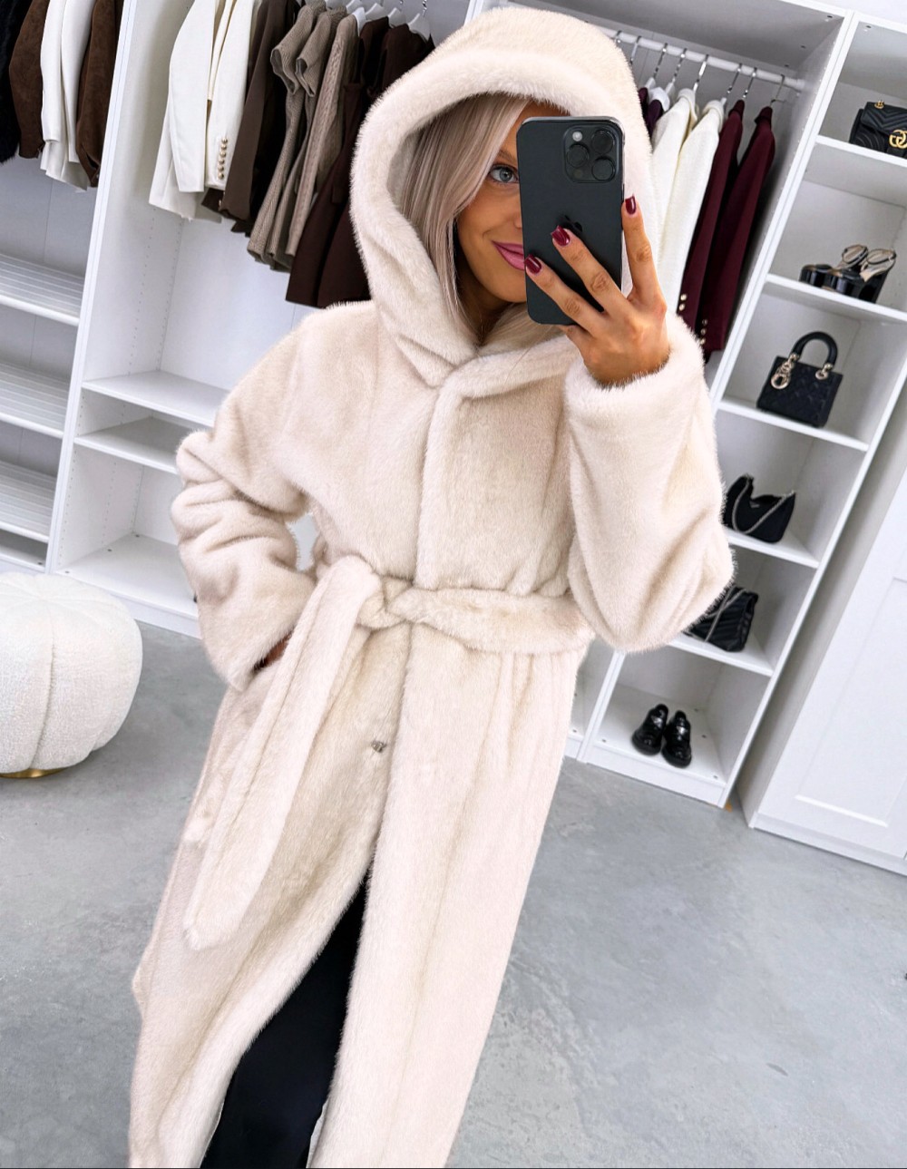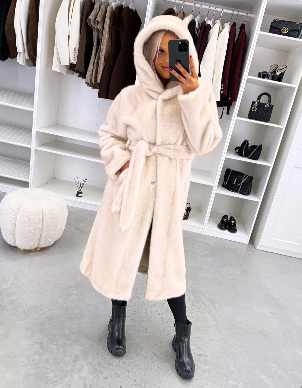 Роскошное зимнее пальто с капюшоном (Один размер, Серо-коричневый)