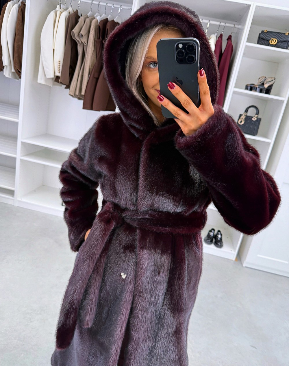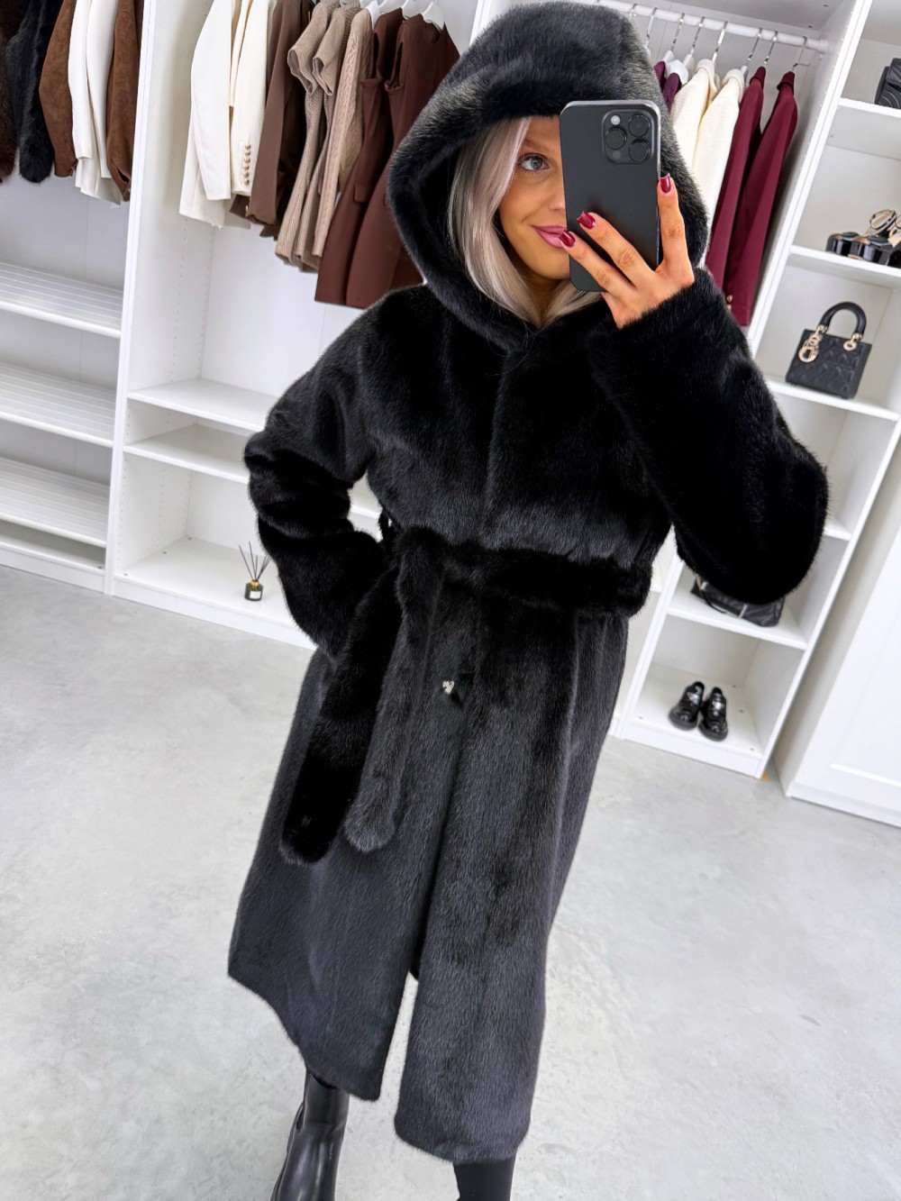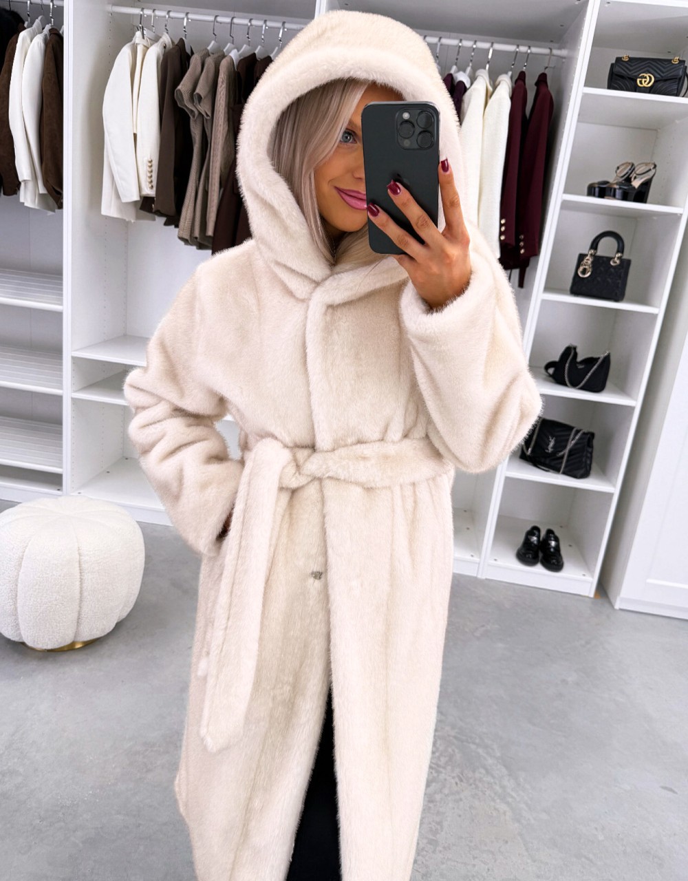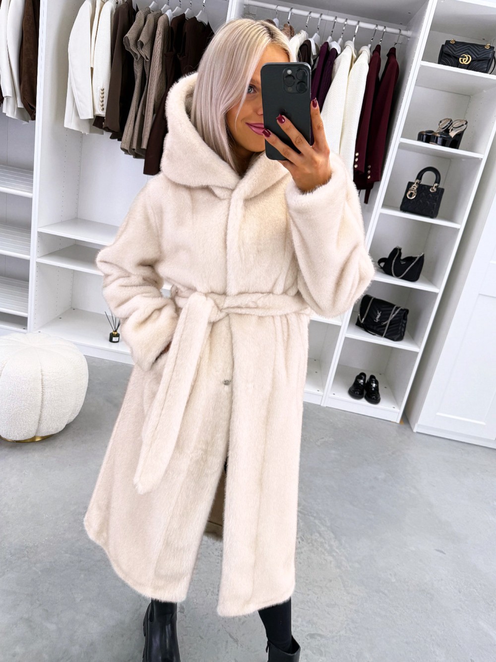 Роскошное зимнее пальто с капюшоном (Один размер, Серо-коричневый)