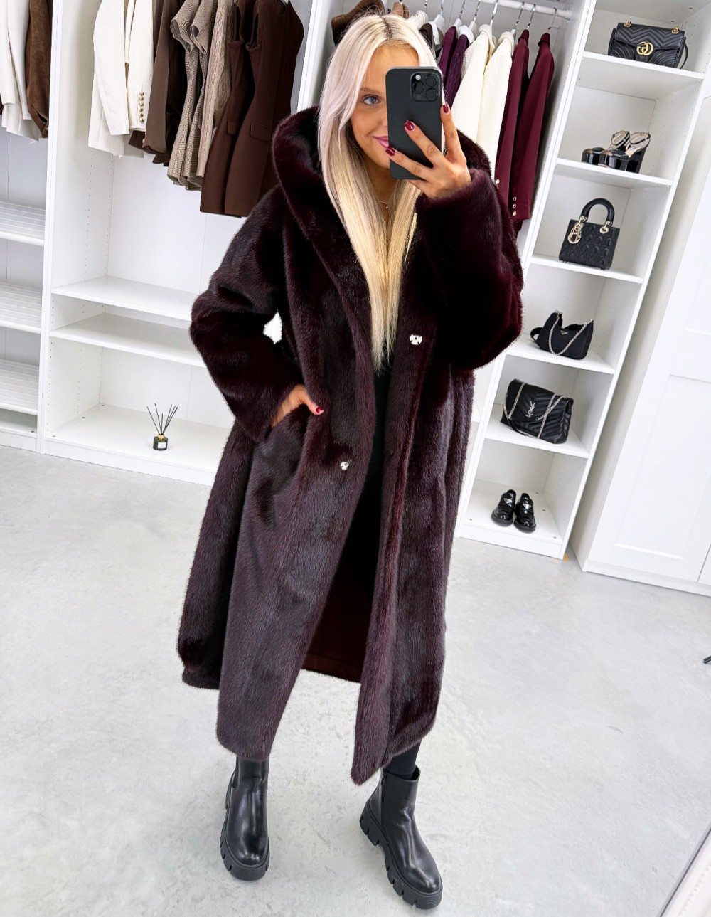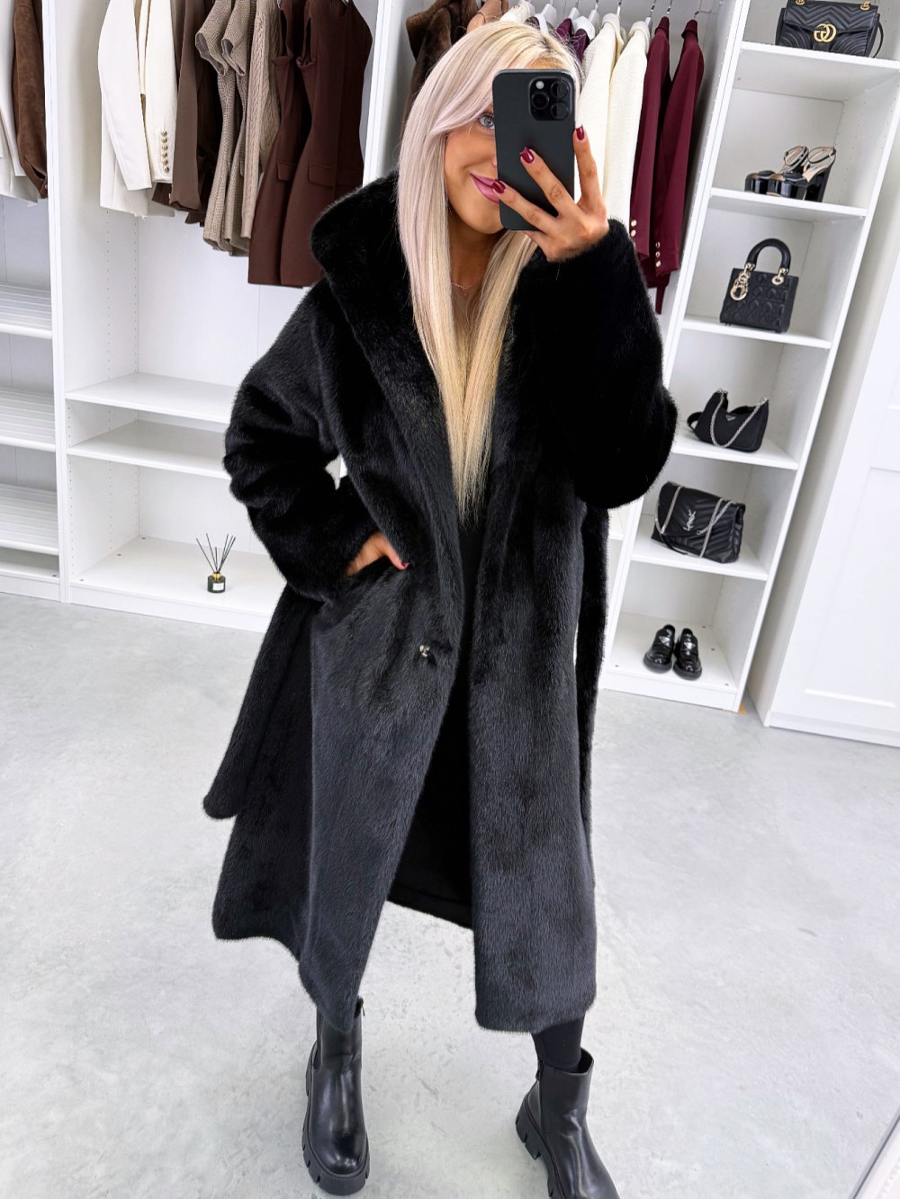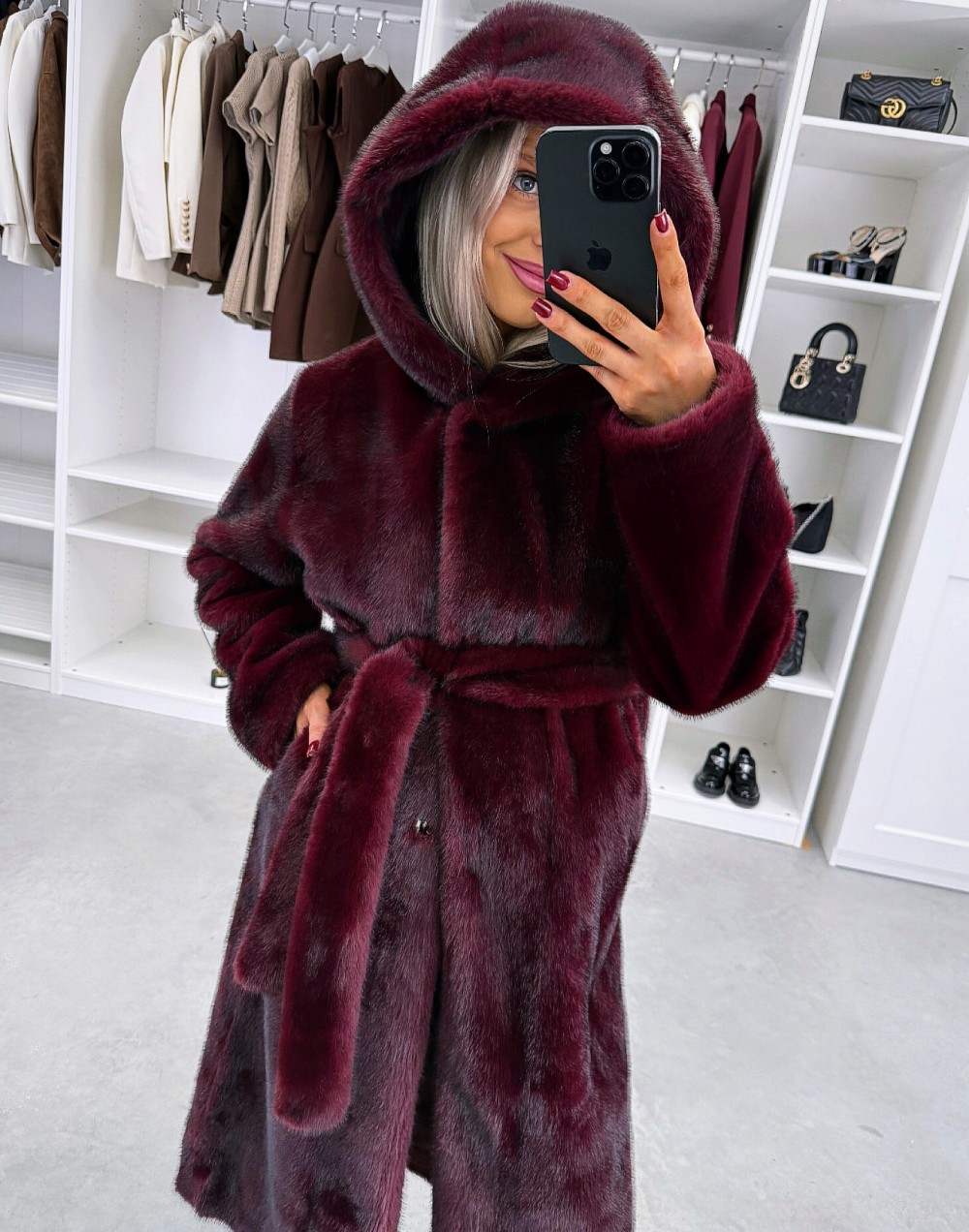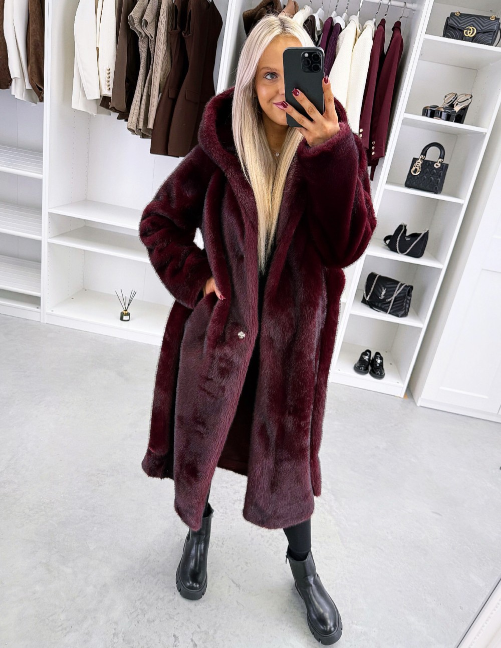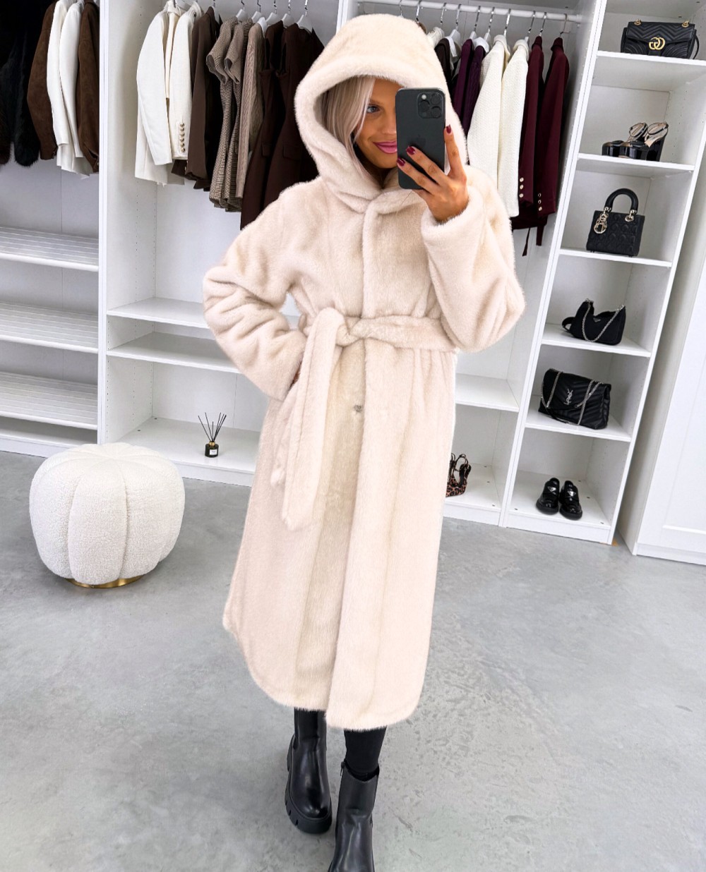 Роскошное зимнее пальто с капюшоном (Один размер, Серо-коричневый)