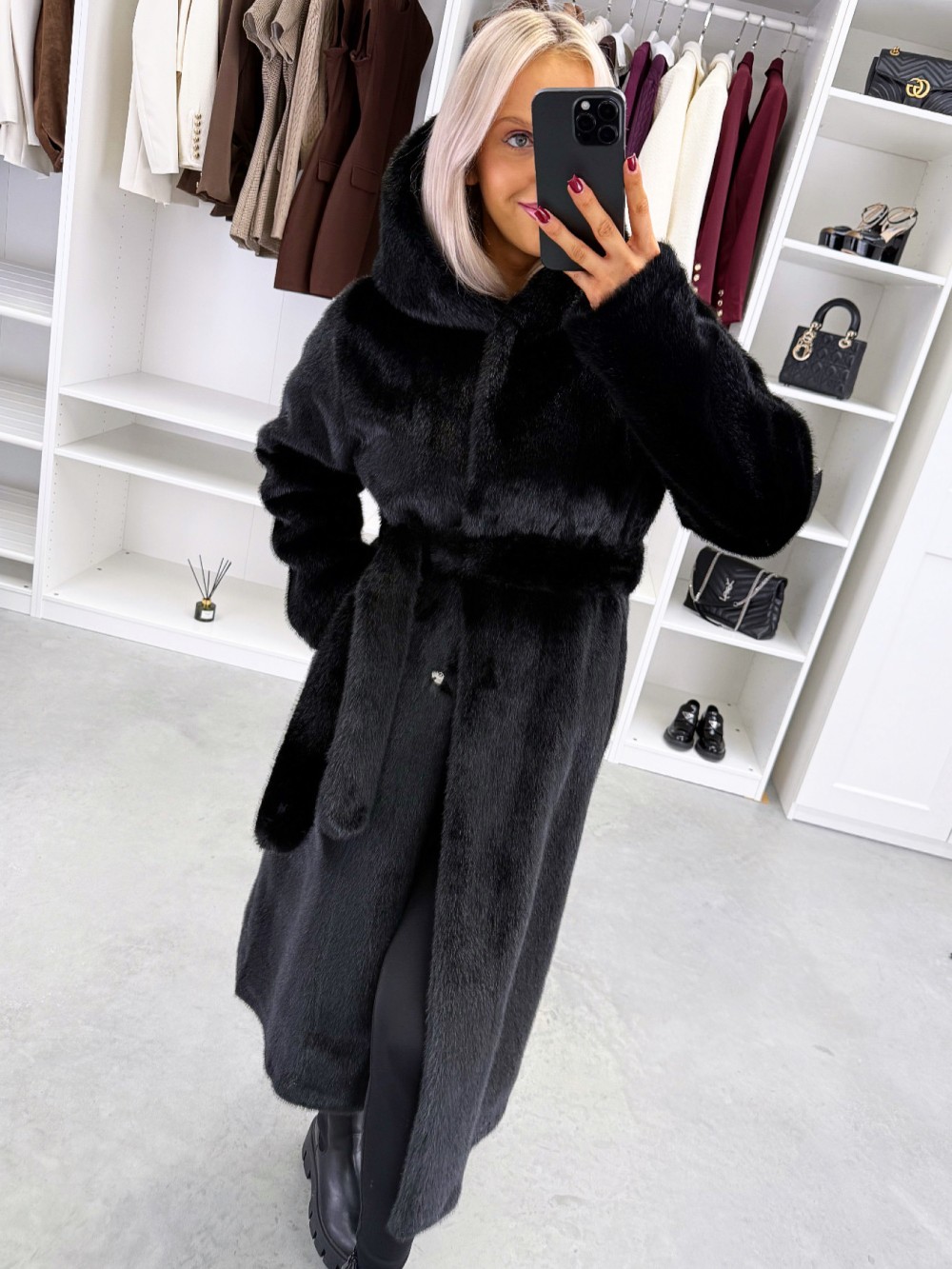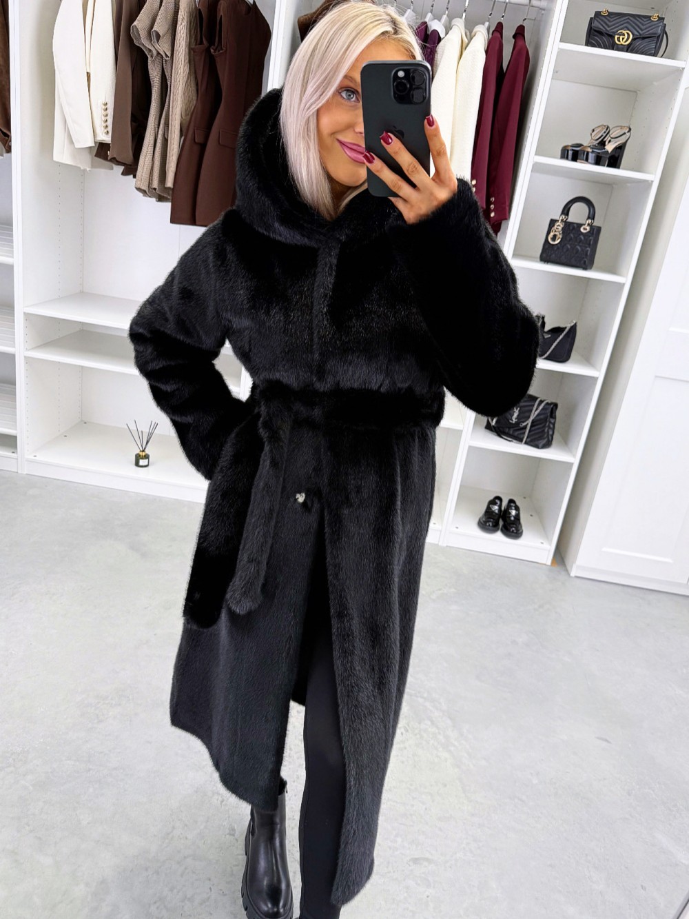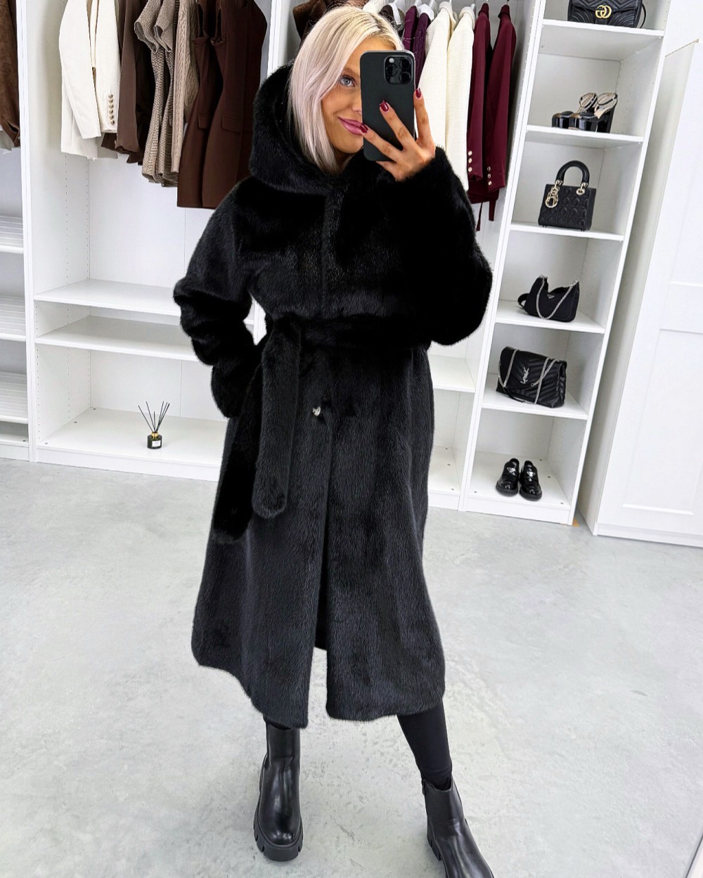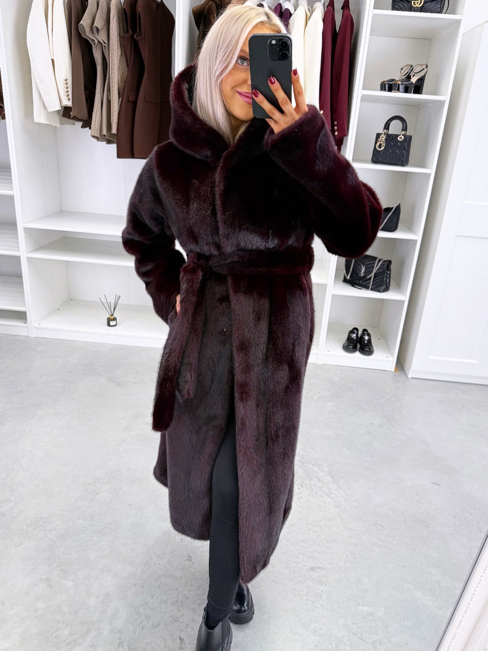 Роскошное зимнее пальто с капюшоном (Один размер, Серо-коричневый)