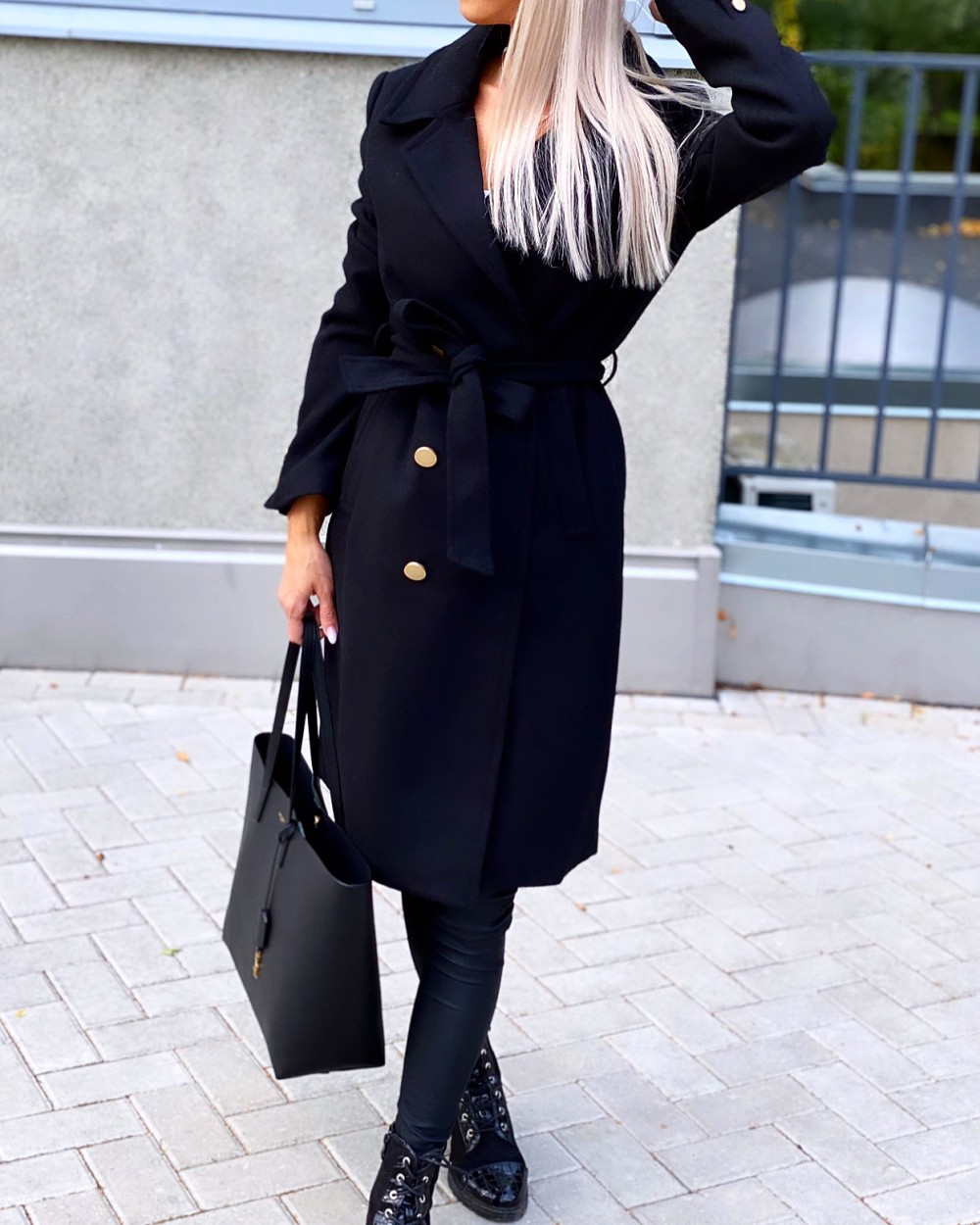 Шерстяное пальто с регулируемой талией (Черный, XS/S)