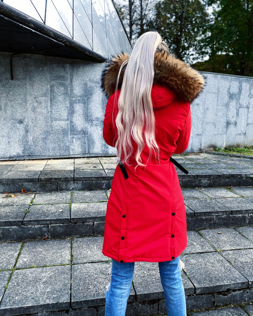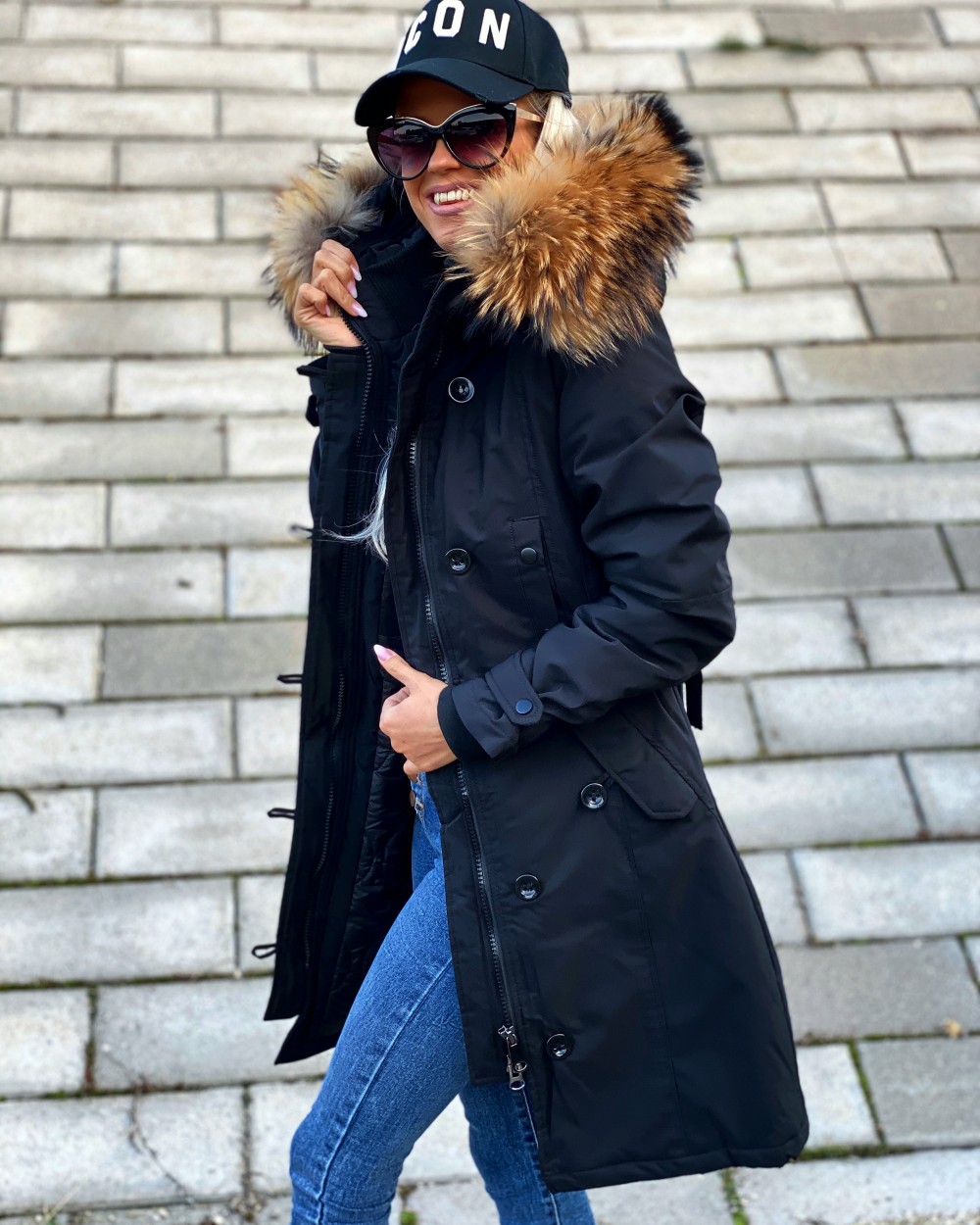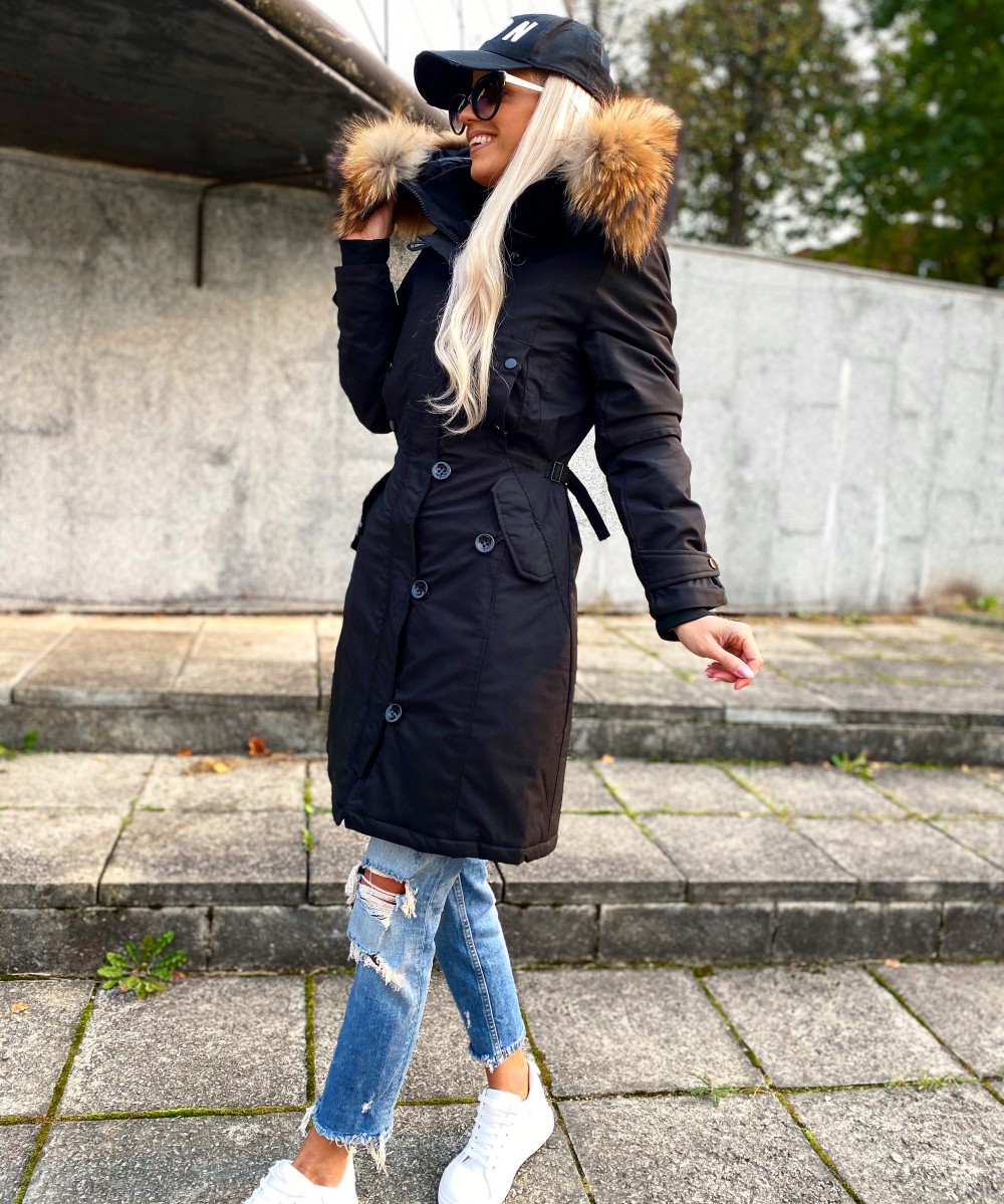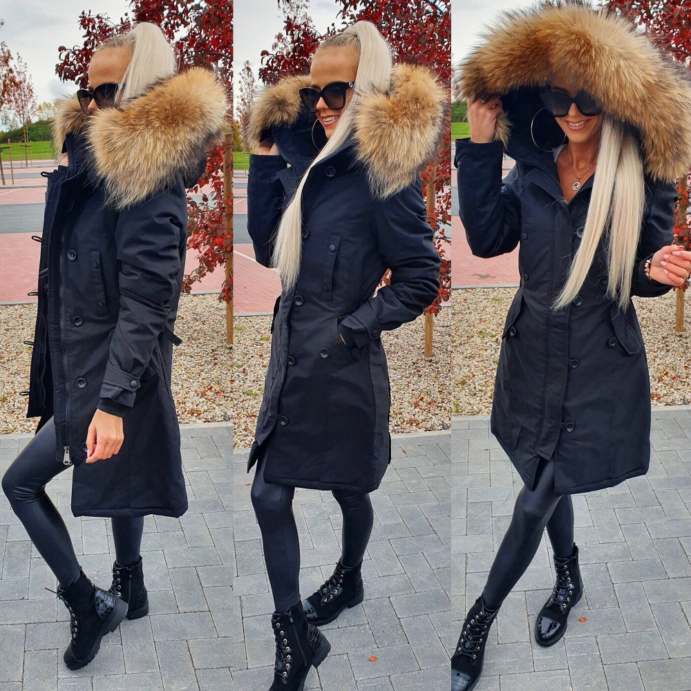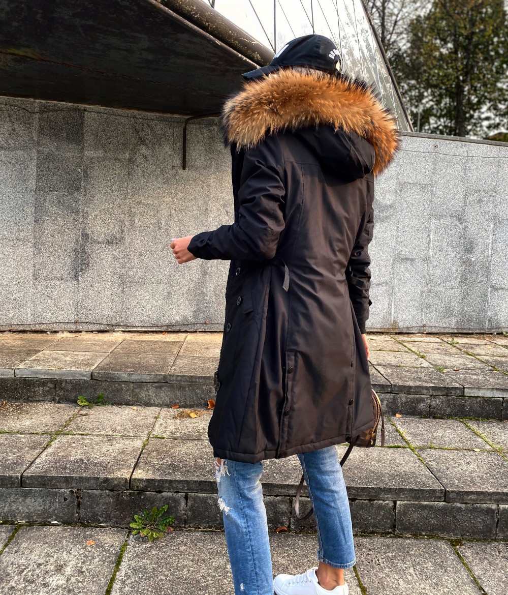 Зимняя куртка с натуральным мехом и водонепроницаемым материалом. (L, Черный)