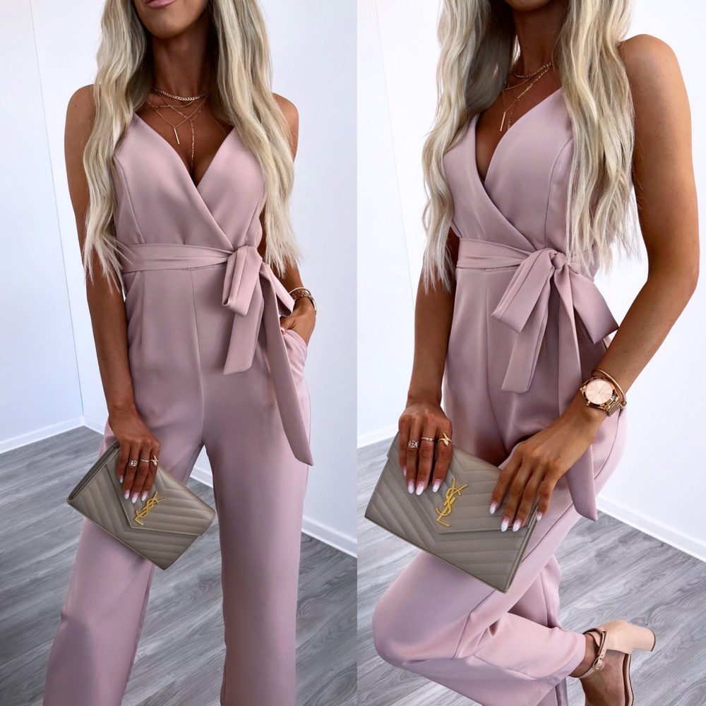 Длинный комбинезон с карманами (XS, Светло-розовый)