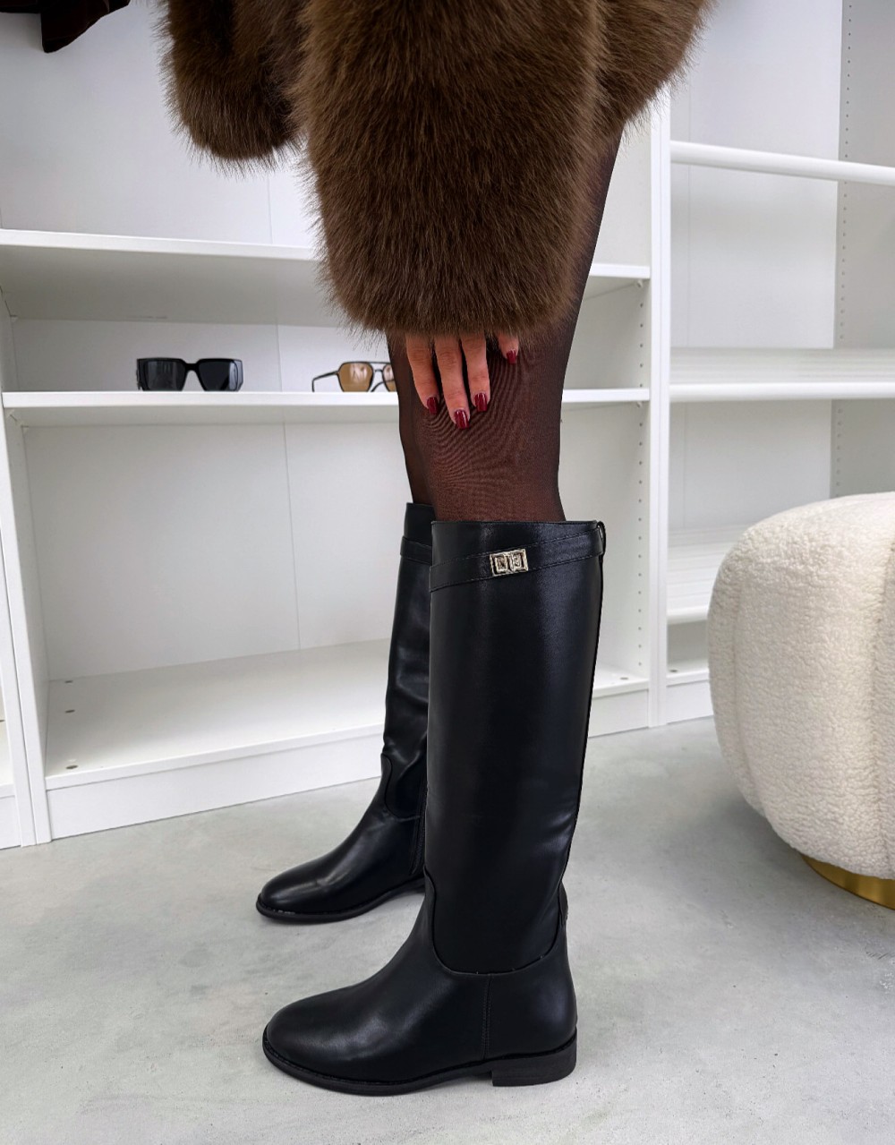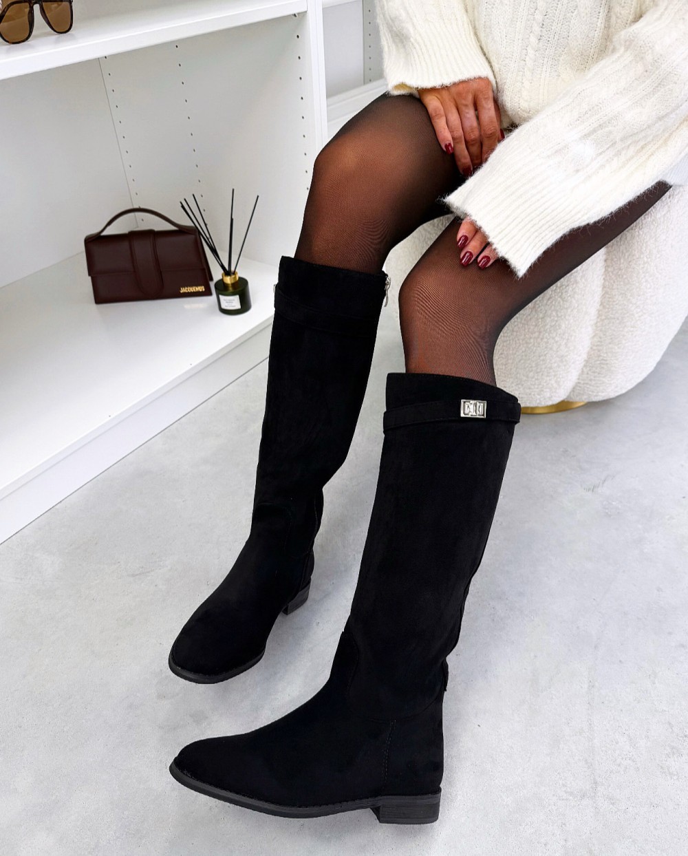 Сапоги с высоким голенищем из искусственной замши (39, Блестящий черный)